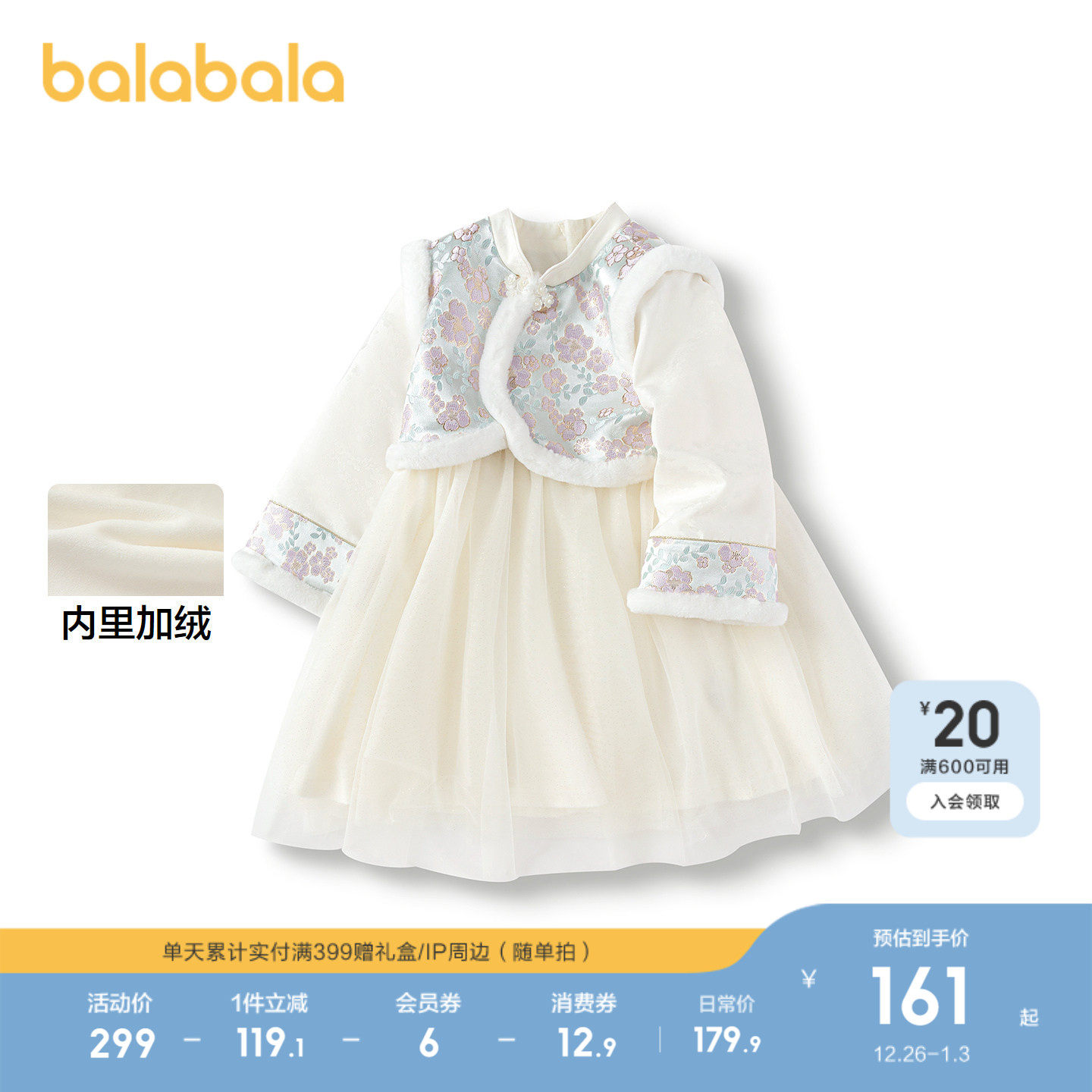 巴拉巴拉女童国风连衣裙秋冬网纱假两件裙子小童洋气中式甜美提花