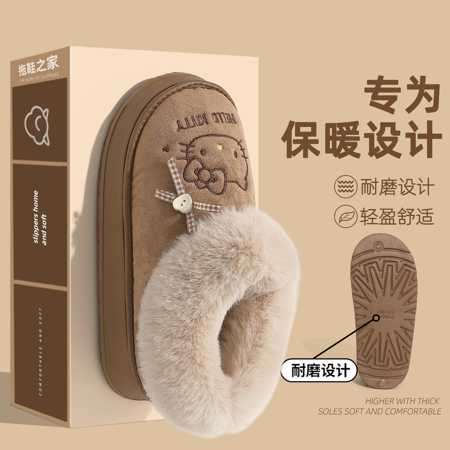 kt猫棉拖鞋女款2025新款冬季包跟室内家居保暖厚底毛毛加绒棉鞋女