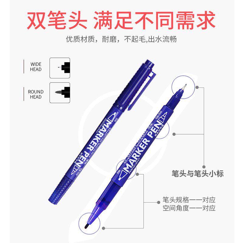 小双头记号笔勾线笔黑色油性速干防水防油不掉色大头马克笔工地美术专用儿童幼儿园小学生绘画描边粗细红蓝水