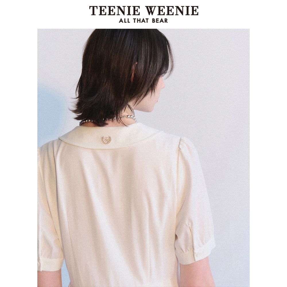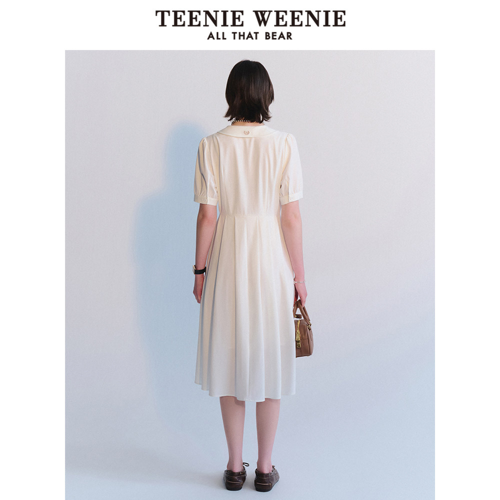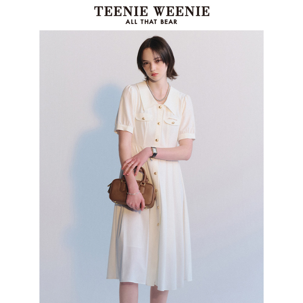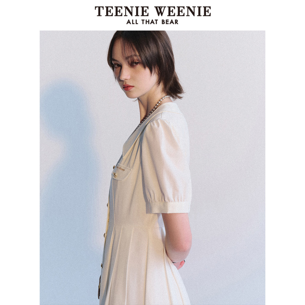 TeenieWeenie小熊奥莱夏季法式简约白色质感连衣裙气质百褶裙
