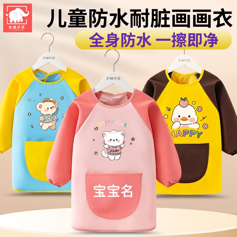 儿童画画罩衣衣服幼儿园防水长袖绘画围裙反穿衣宝宝吃饭围兜防油