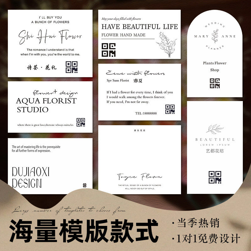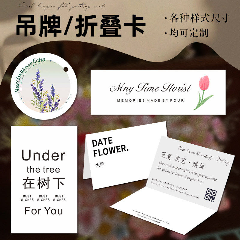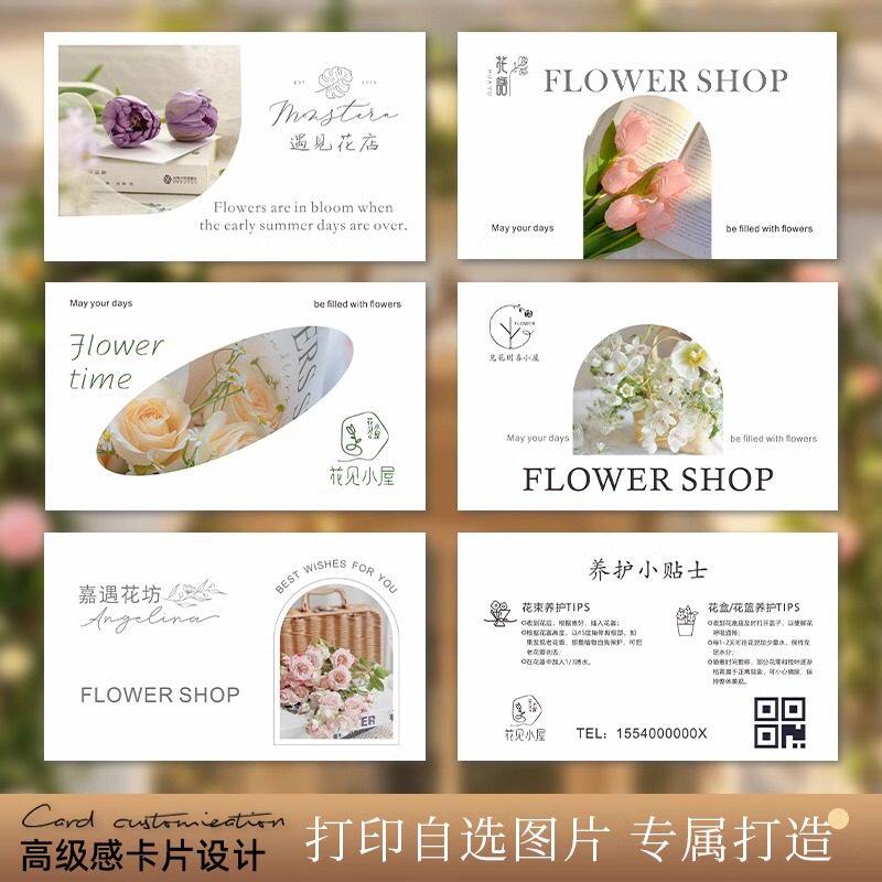 花店卡片定制logo鲜花束名片制作花艺宣传明信片高级感祝福语贺卡