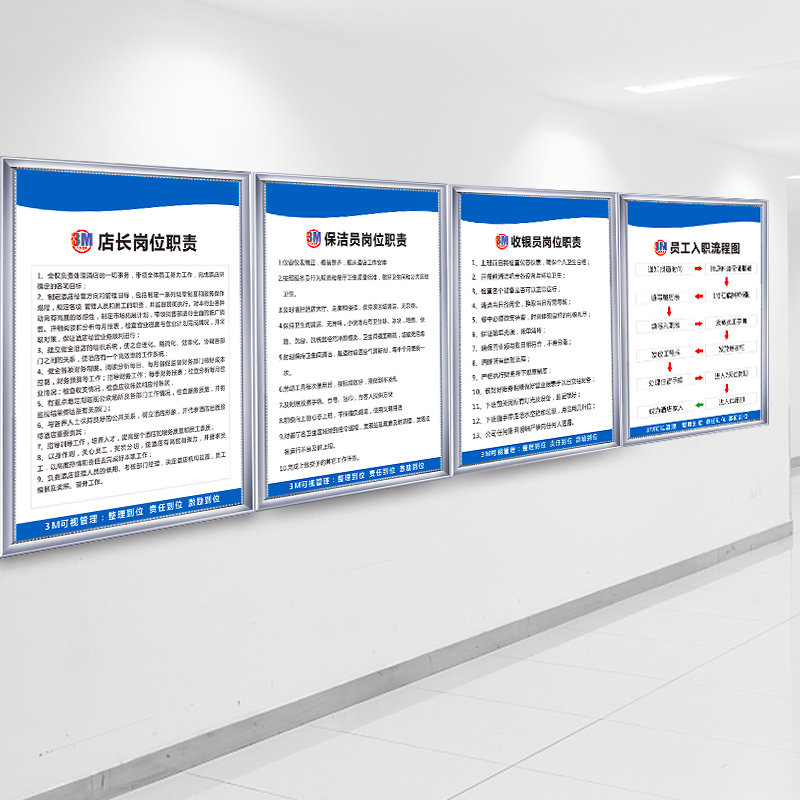 4D厨房管理制度牌传菜部标准流程图仪容仪表端托姿势洗碗工服务员中后厨前厅操作规范挂图店长收银员岗位职责