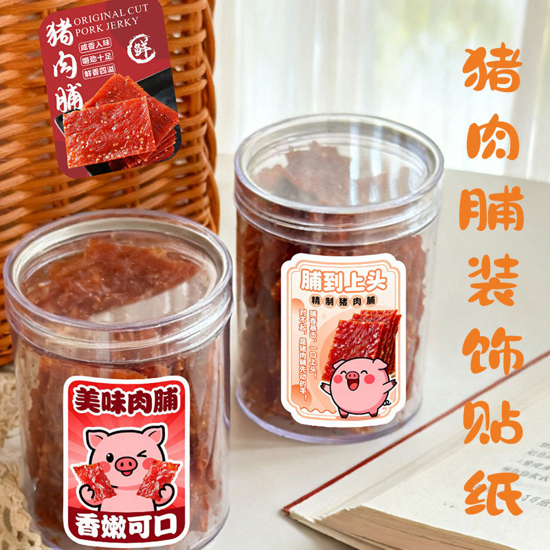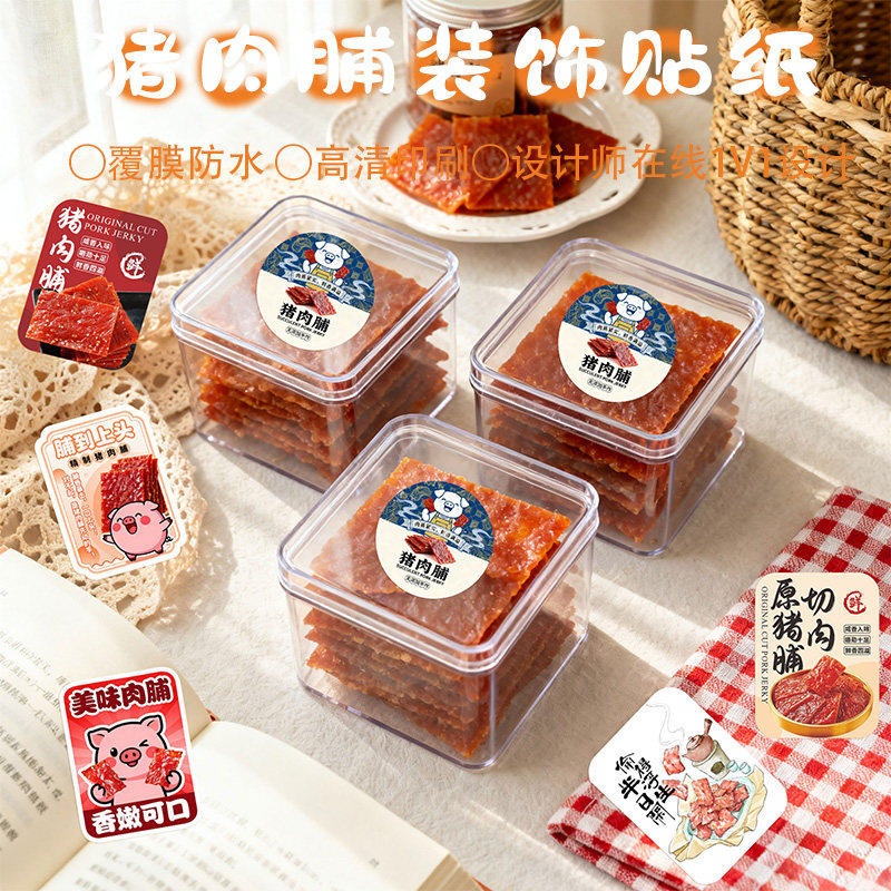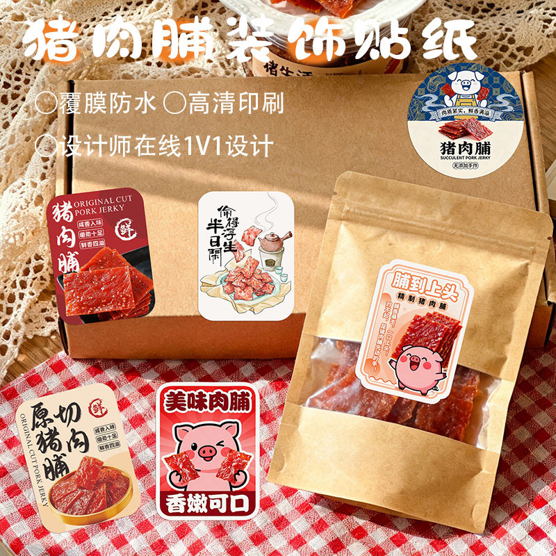 猪肉脯包装贴纸定制肉干logo商标不干胶手工制作蜜汁手撕牛肉干打包罐字创意图案封口贴春节年货腊肉烤肠标签