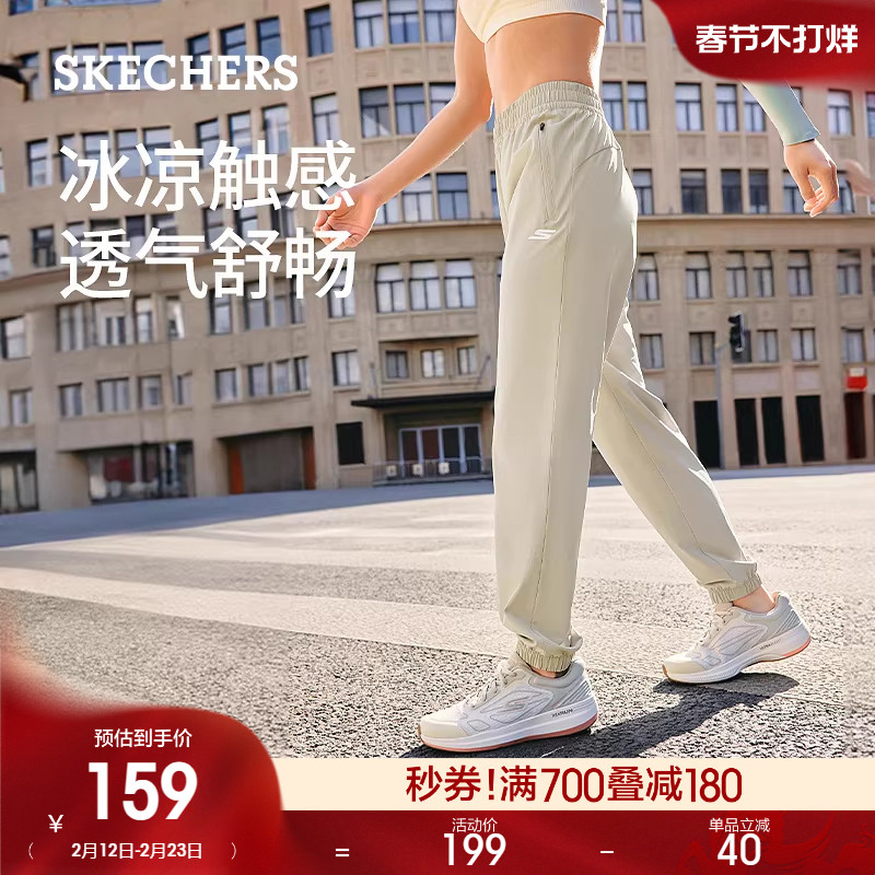 Skechers斯凯奇男士休闲裤梭织长裤直筒裤户外舒适运动弹力束脚裤