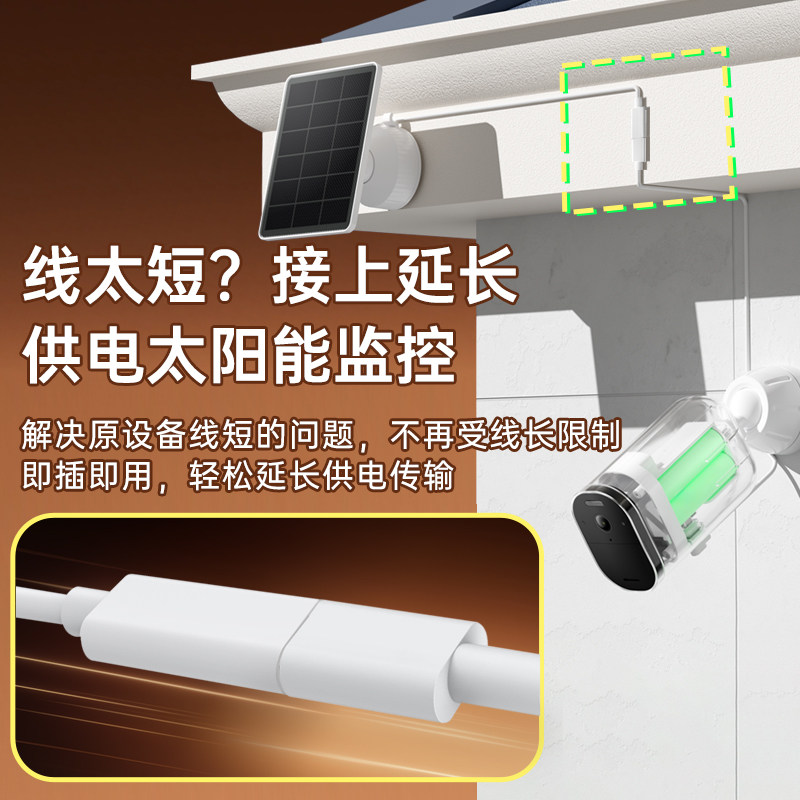 适用太阳能摄像头电源延长线海康威视/乔安/萤石奥克斯监控type-c公转母连接线太阳能板加长线10米/8米5米3米