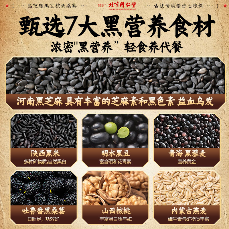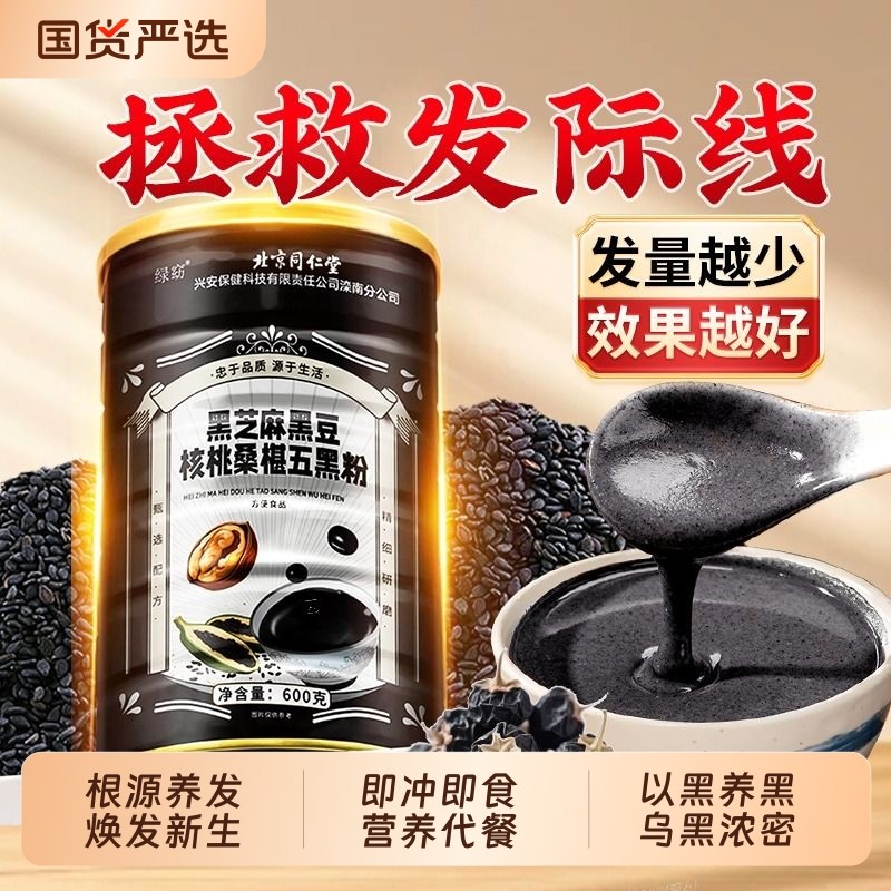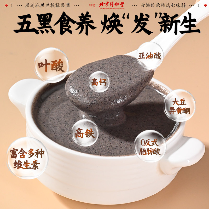 北京同仁堂五黑粉正品官方旗舰店黑芝麻糊无糖养发营养早餐代餐粉