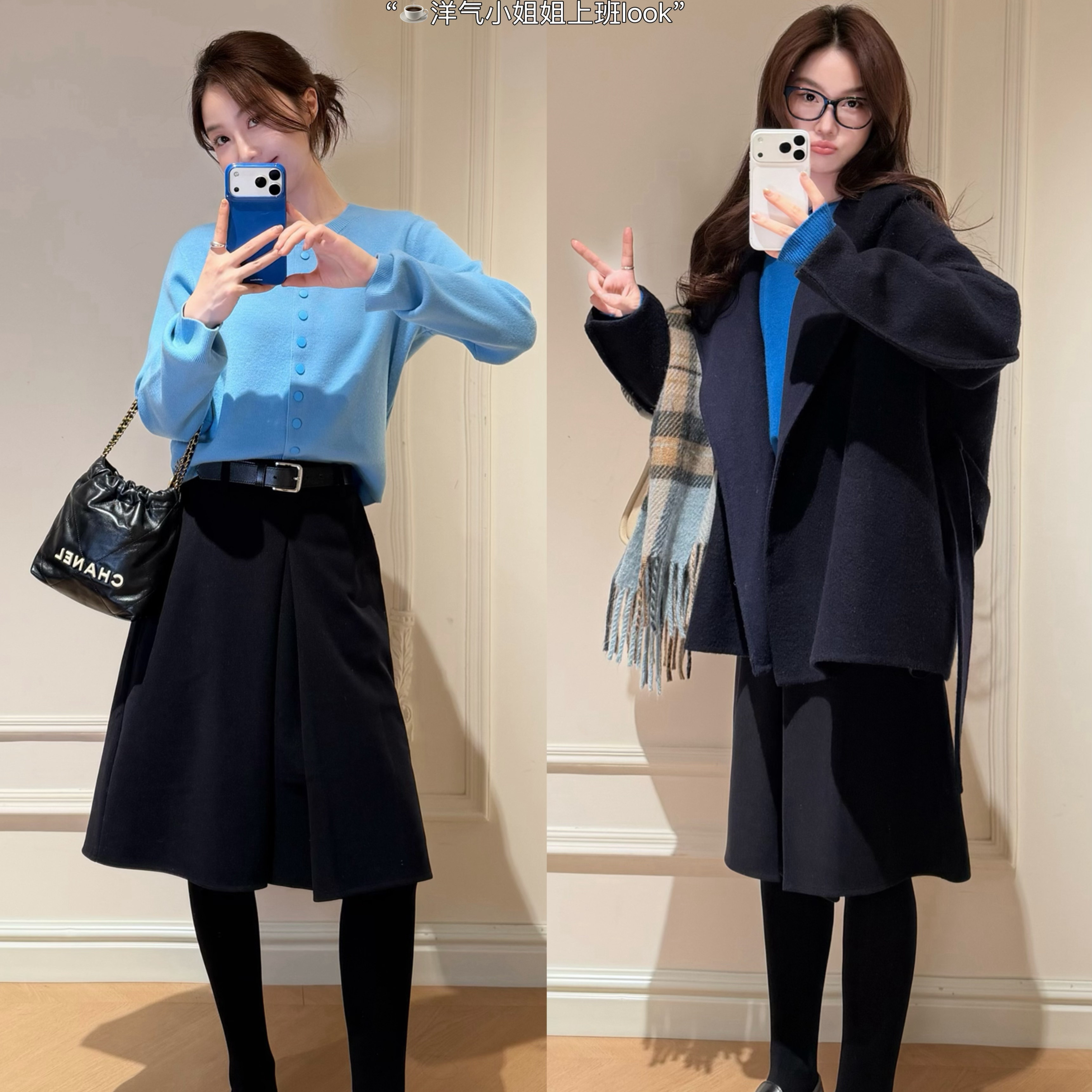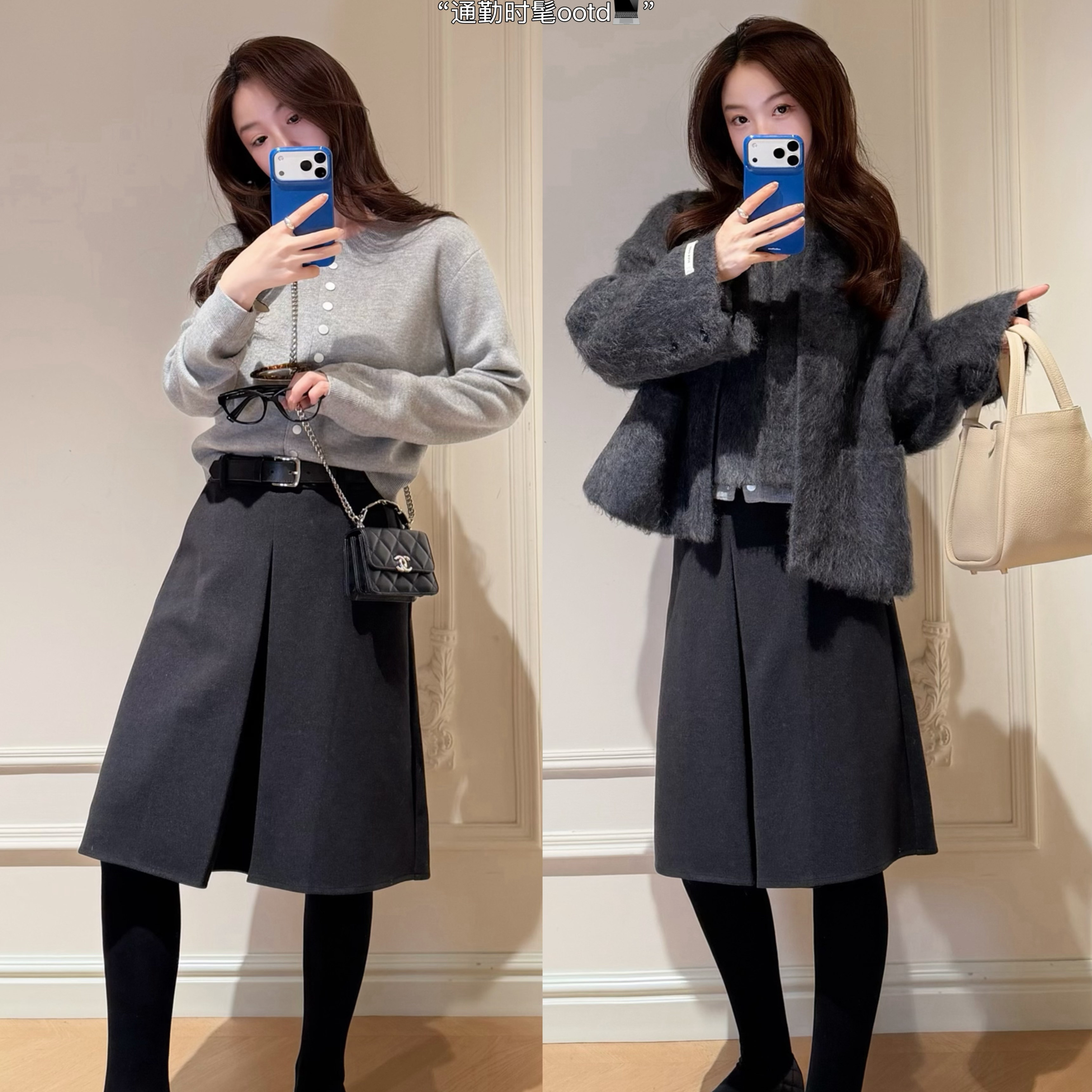 曹大曼 时髦通勤超显瘦复古高腰毛呢半身裙女加厚保暖抗起球A字裙