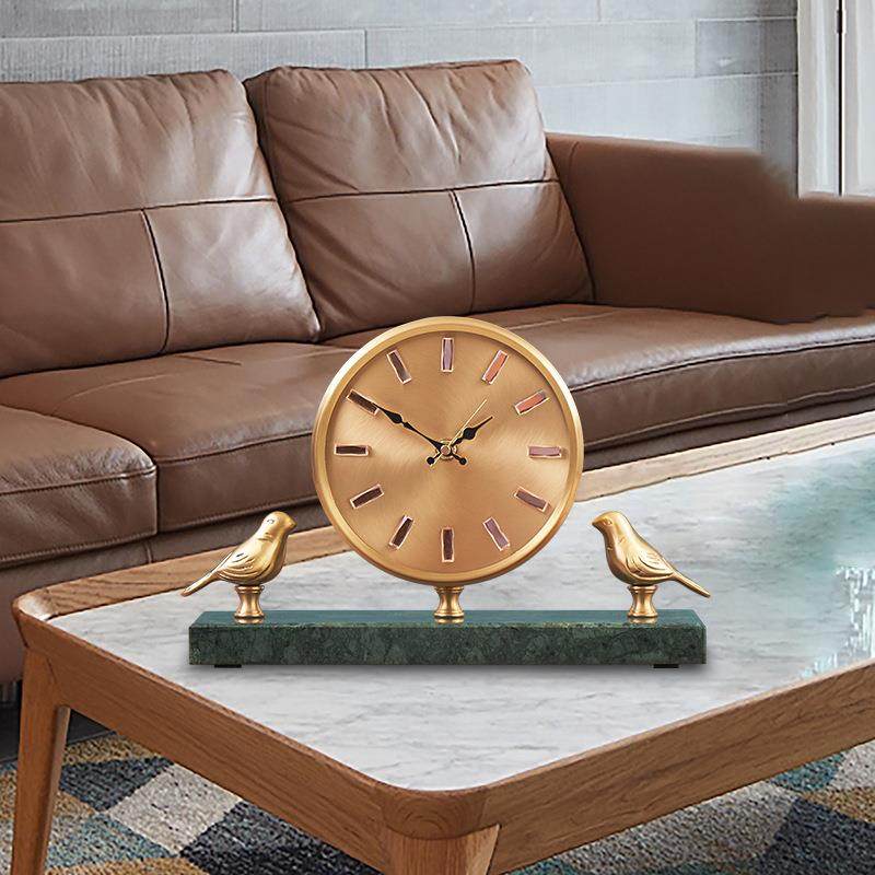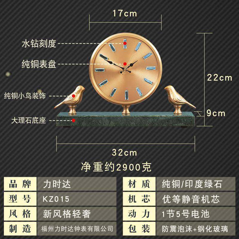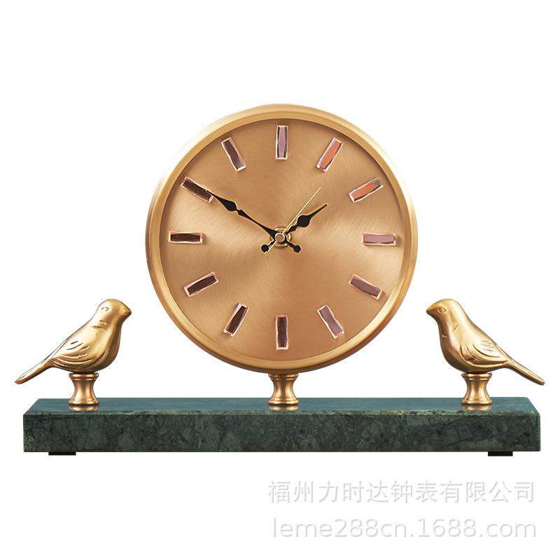 力时达印度大理石纯铜台钟美式桌面钟时尚轻奢座钟欧式立钟创意钟