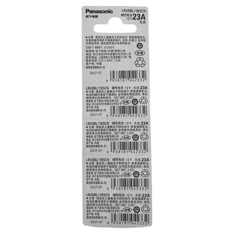 松下23A12V电池 12伏电动门车库卷帘门遥控器卷闸门防盗门电池1粒