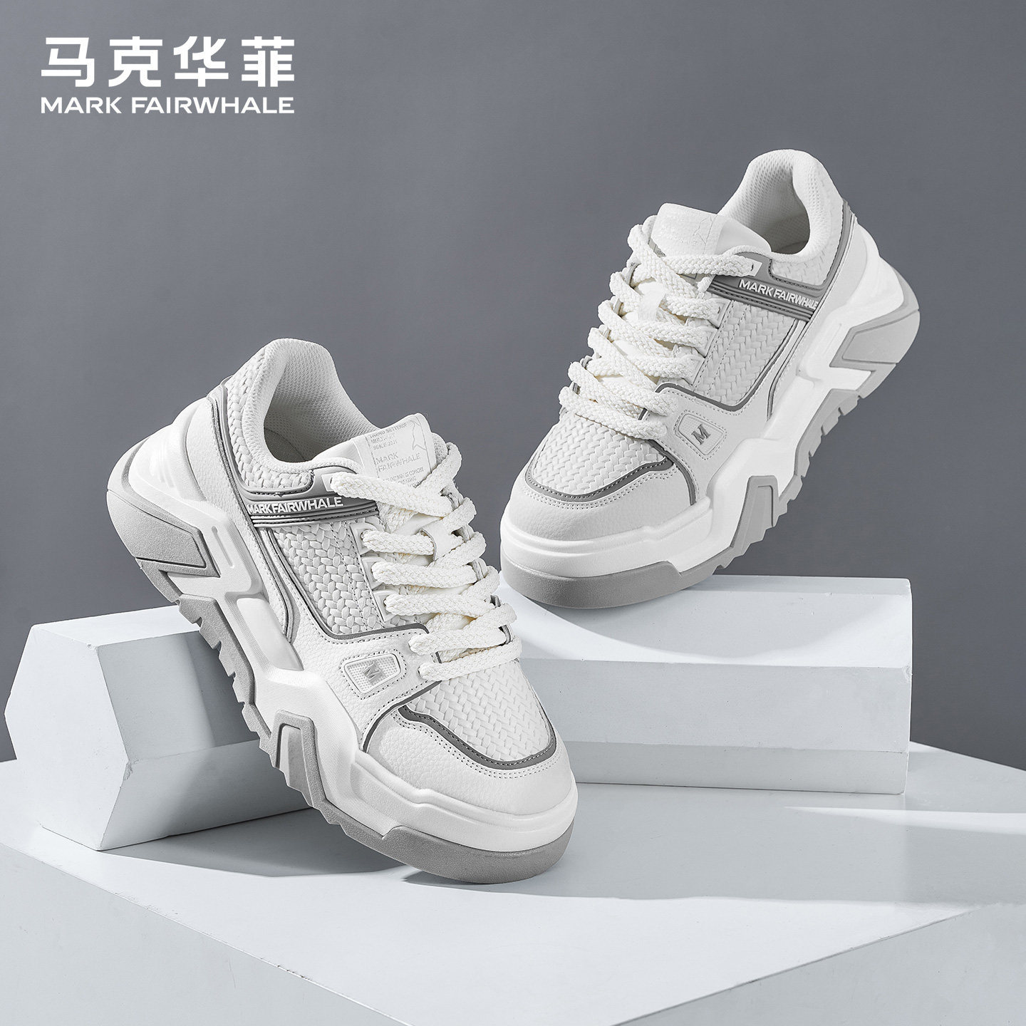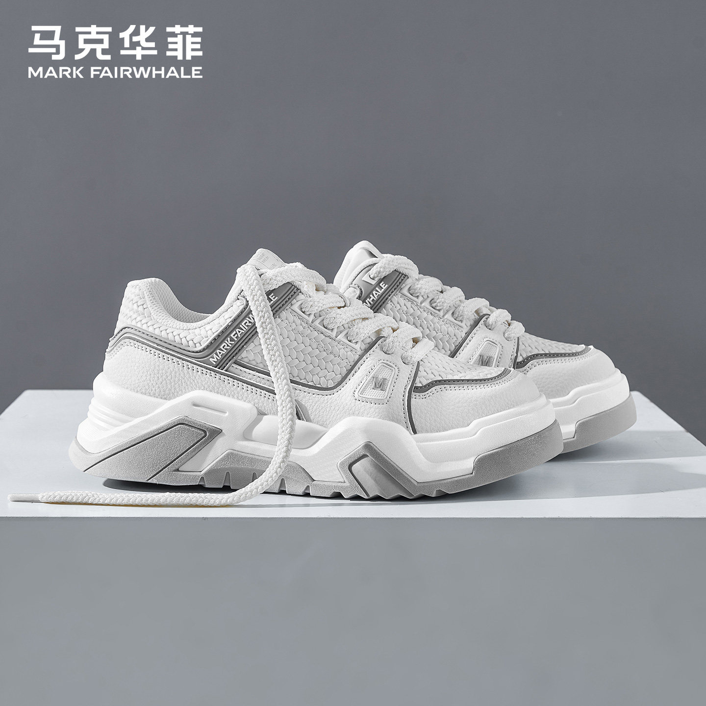 马克华菲2025新款厚底面包鞋男款百搭休闲板鞋内增高小白鞋子男鞋