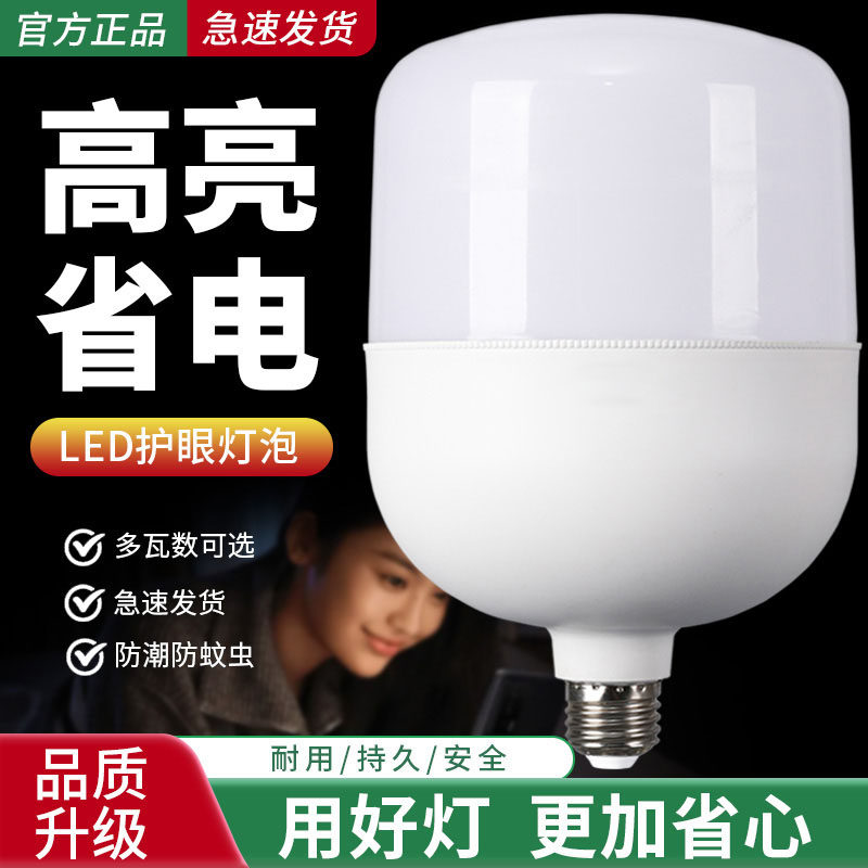 led灯泡超亮节能灯白光家用省电E27大螺口客厅室内灯照明圆柱形灯