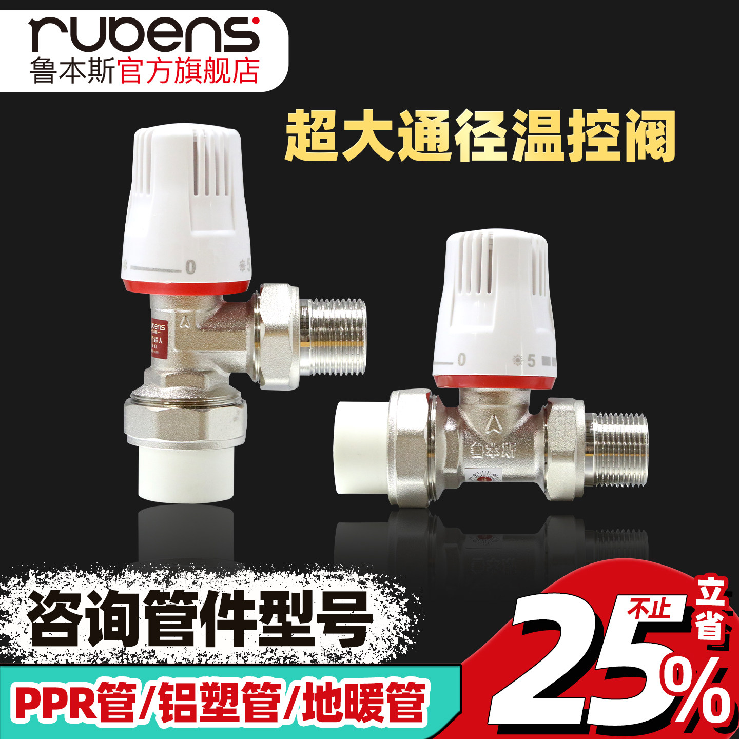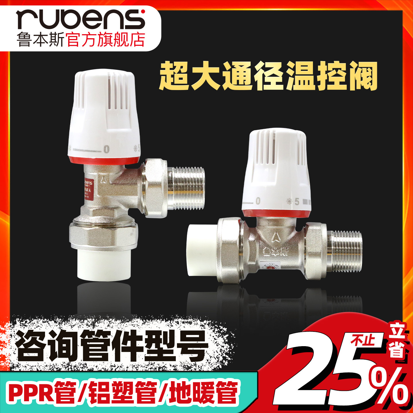 鲁本斯 PPR温控阀暖气片家用水暖散热器片铝塑管调温式阀门直角阀