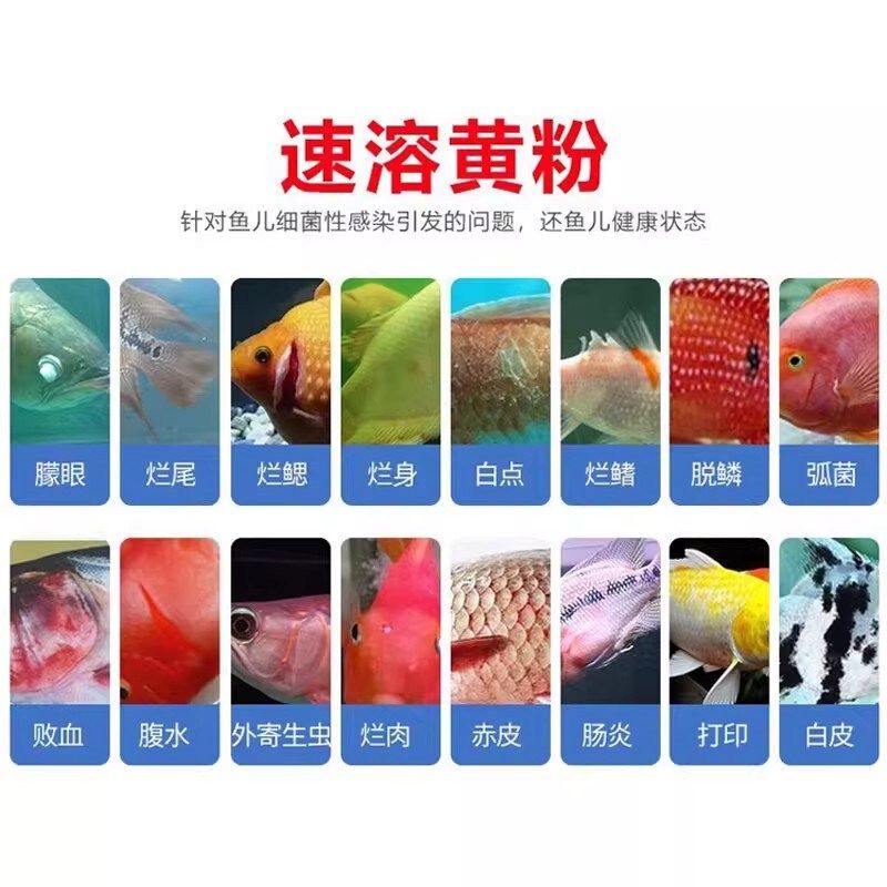 日本黄粉观赏鱼锦鲤充血炸鳞烂尾肠炎水霉白点蒙眼鱼缸杀菌鱼药