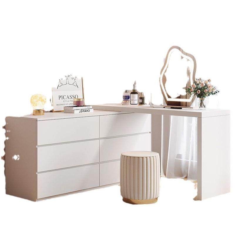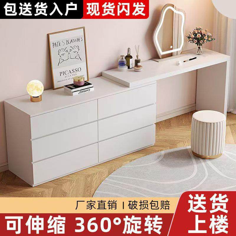 梳妆台卧室现代简约一体小户型收纳柜奶油风化妆镜可伸缩化妆桌