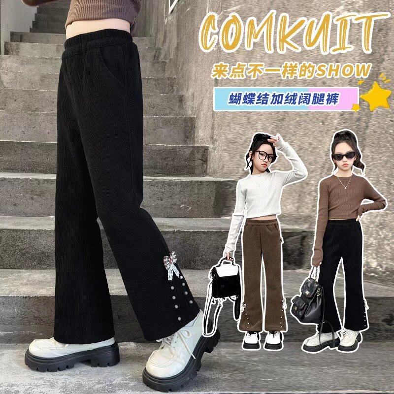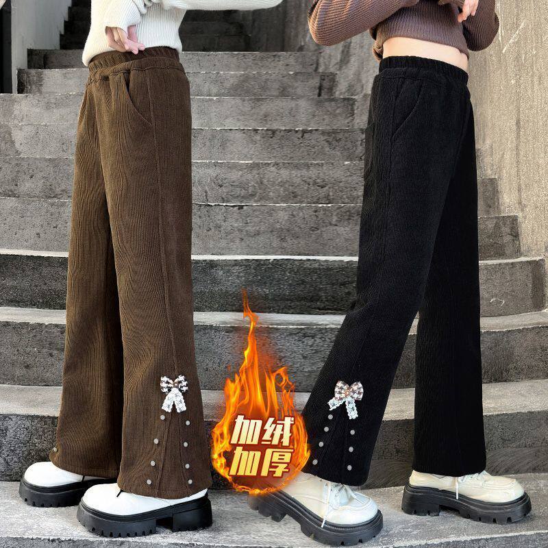女童加绒喇叭裤秋冬装新款洋气儿童一体绒裤子中大童加厚外穿长裤