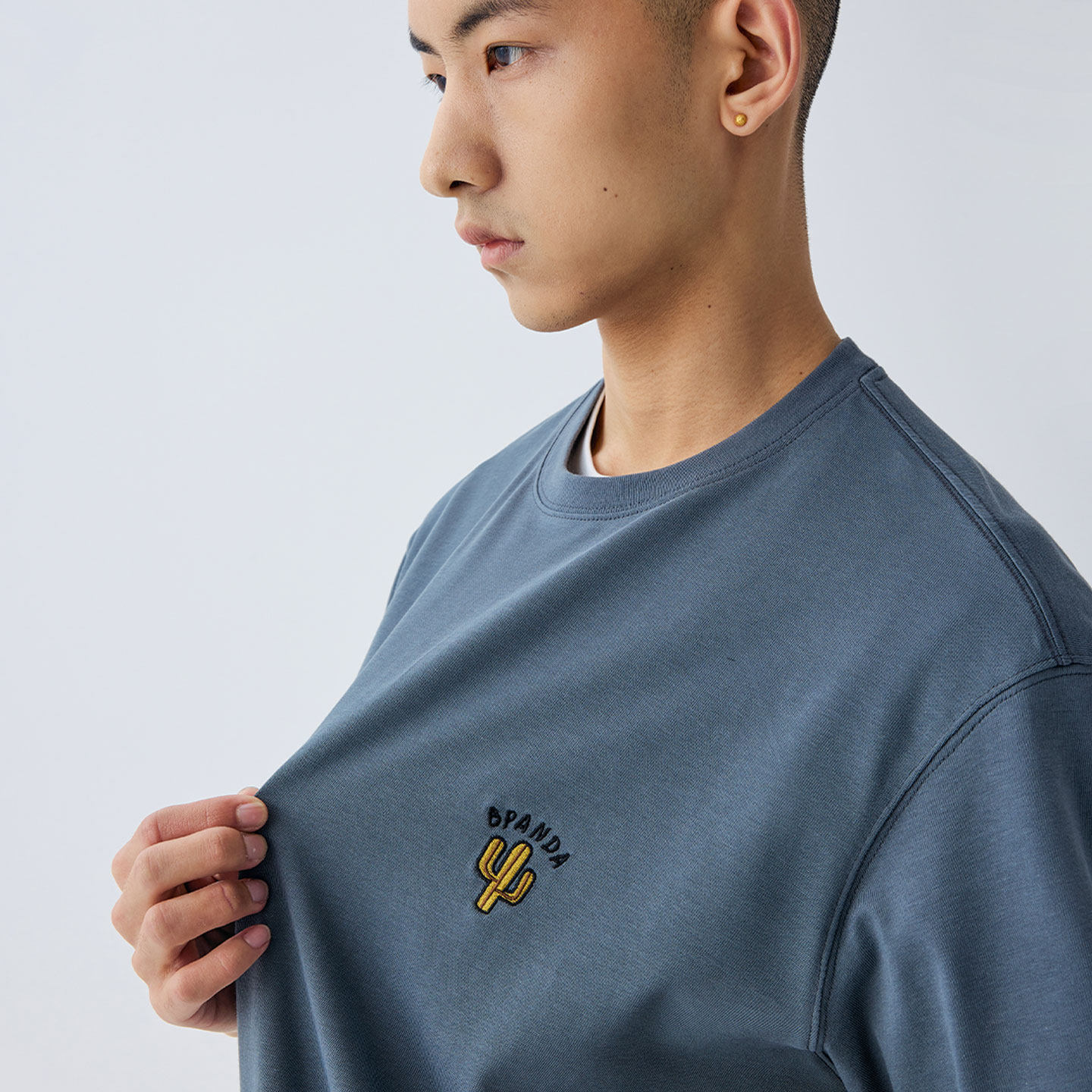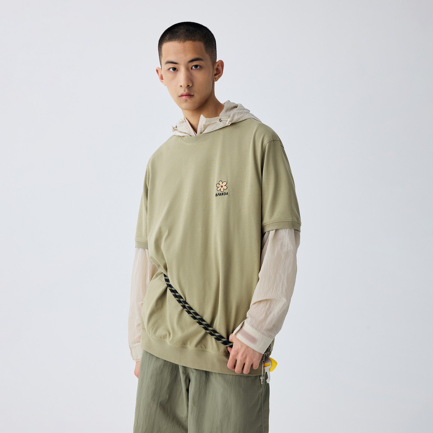 【清仓】BENPANDA 纯棉短袖男刺绣潮流螺纹下摆内搭宽松圆领T恤夏