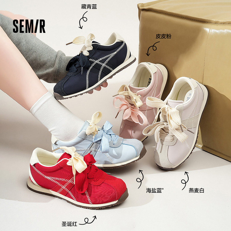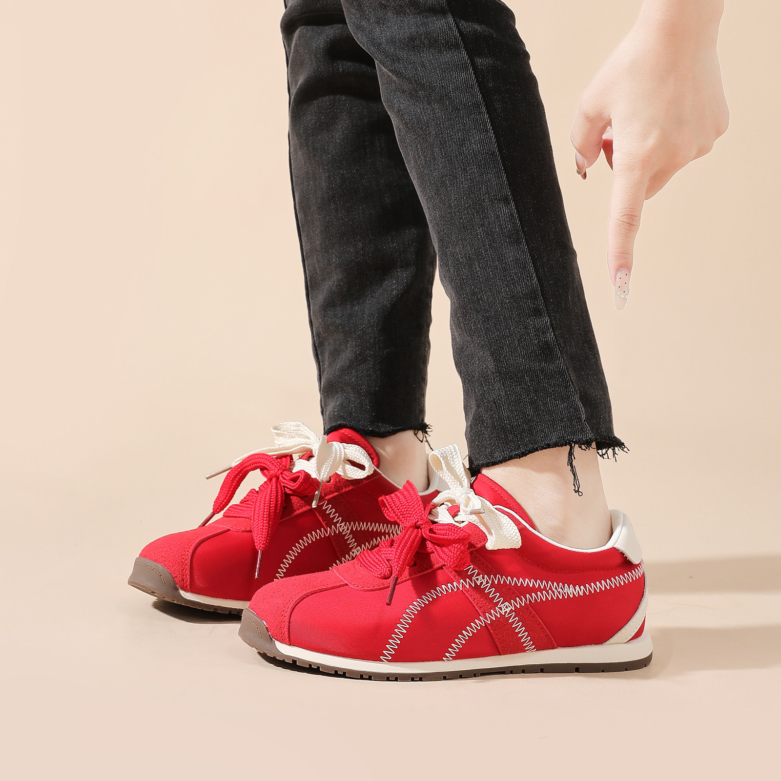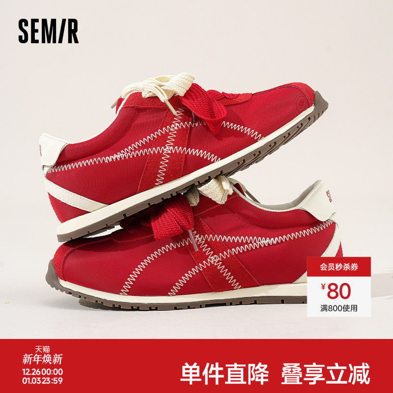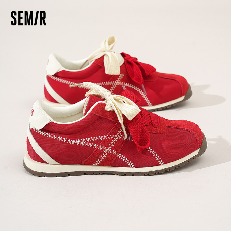 Semir女鞋红色德训鞋女款2025新款秋冬休闲芭蕾百搭平底阿甘鞋子