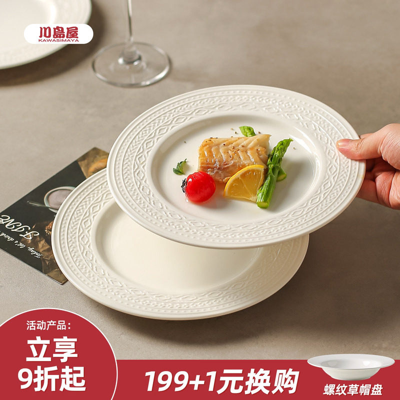 川岛屋法式陶瓷盘子高级感家用碟子西餐餐盘牛排盘蛋糕甜品意面盘