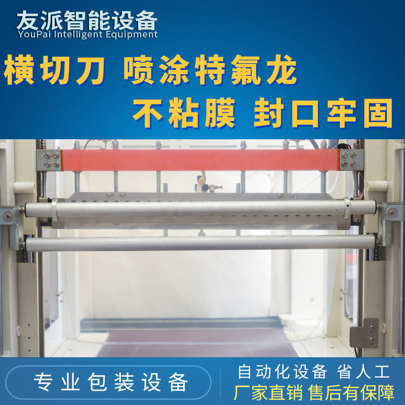 友派DQX6040S纸箱全自动直线输送带袖口式套膜机PE膜热收缩包装机