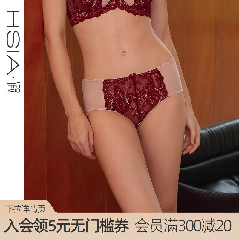 【倾城之恋小裤】遐蕾丝红色内裤女纯棉裆中腰性感速干大码平角裤