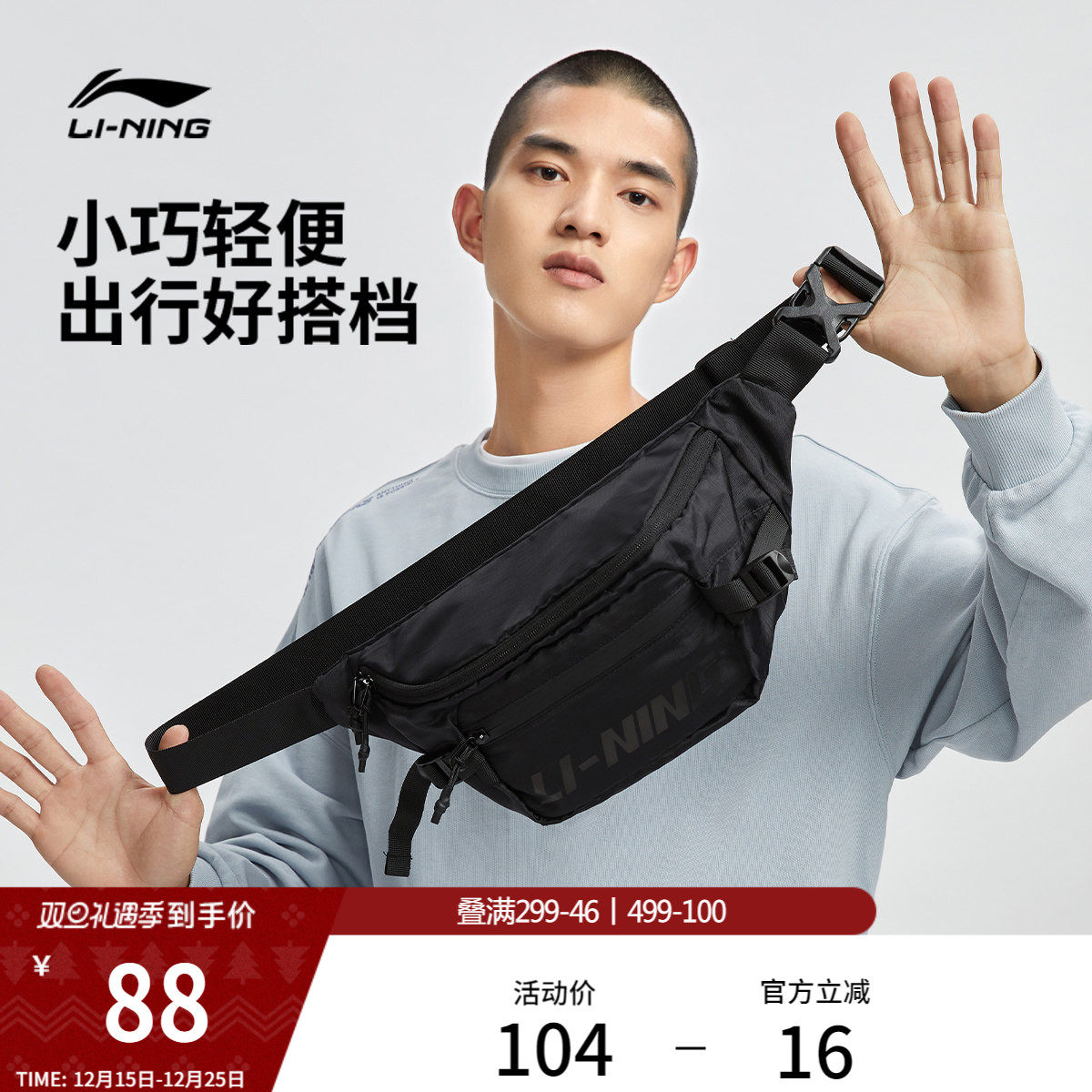 李宁腰包男女健身系列情侣同款百搭黑色时尚休闲运动包手机斜挎包
