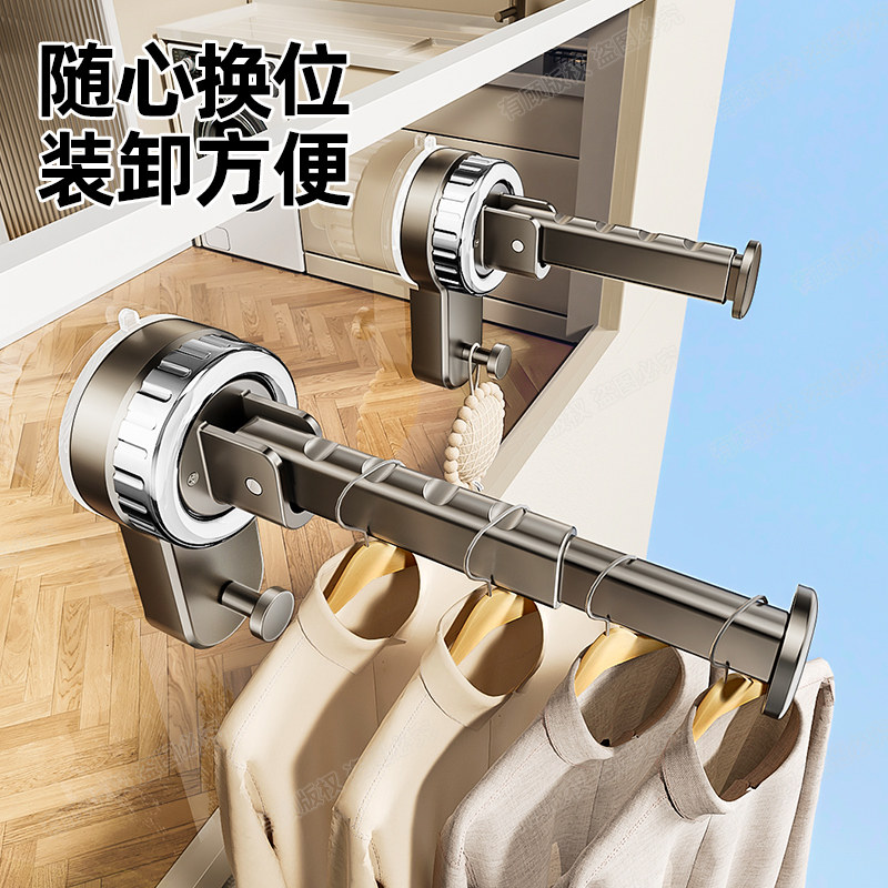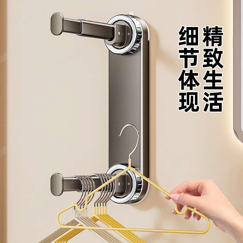 吸盘晾衣架收纳神器家用阳台免打孔伸缩挂衣架子浴室折叠玻璃衣柜