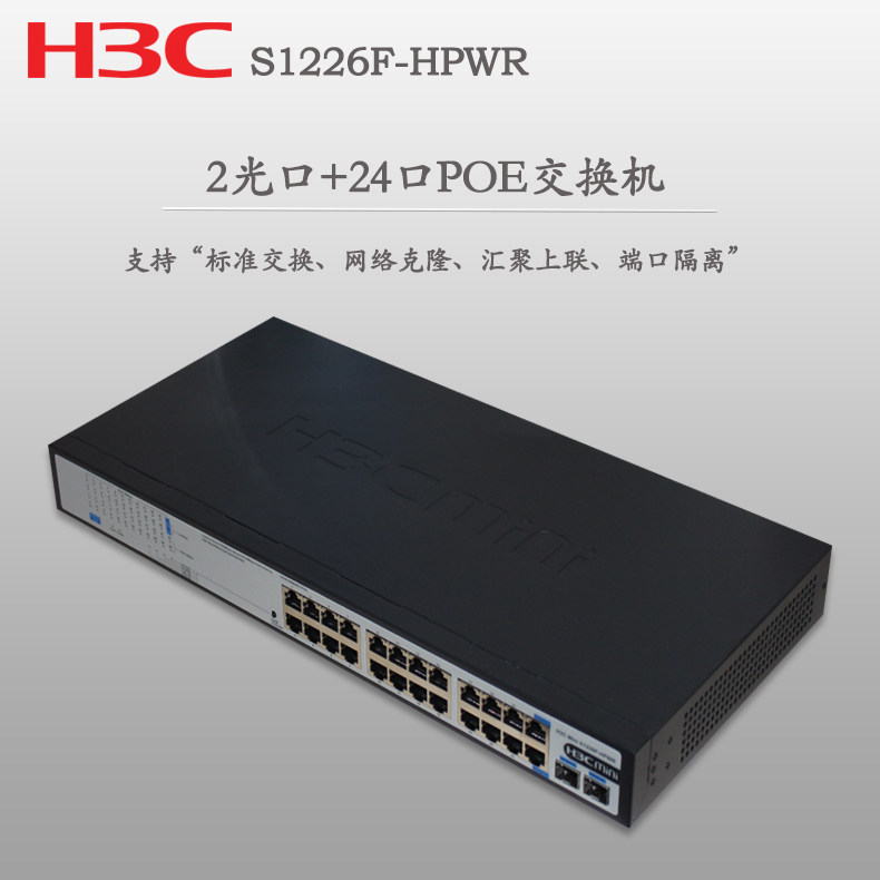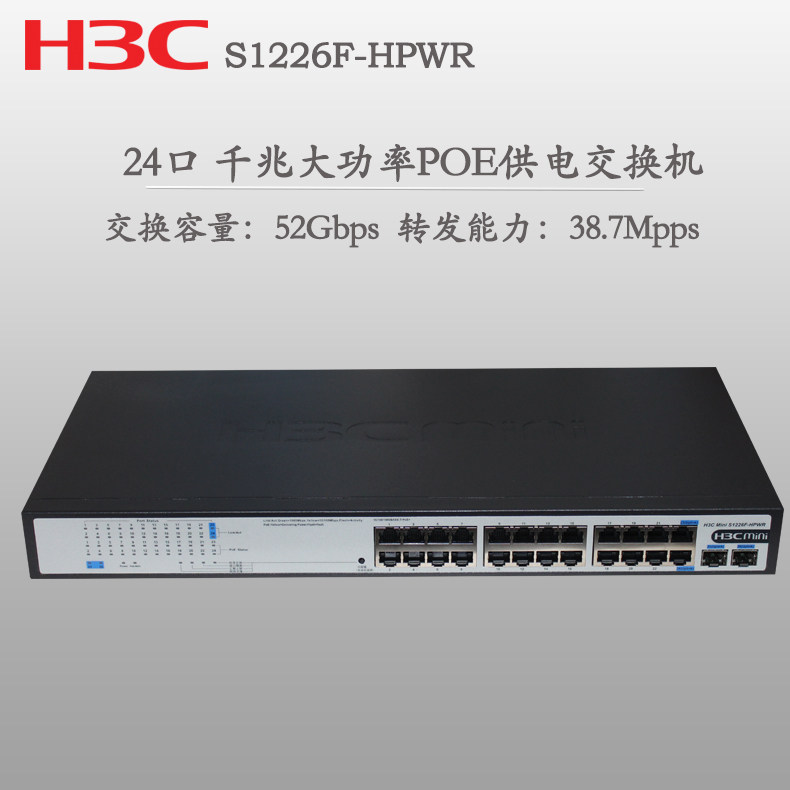 专票+现货H3C华三 S1226F-HPWR/PWR 24口千兆POE供电交换机S1226FX-PWR/HPWR 2光口无管理即插即用3年保