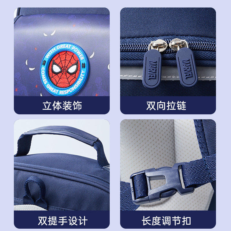 迪士尼儿童书包小学生用男生蜘蛛侠一到三年级减负护脊高颜值冰雪艾莎女孩卡通透气双肩背包史迪奇