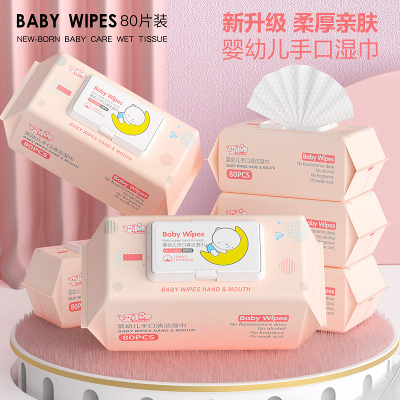 抽婴儿湿巾手口湿纸巾80片装大包家用湿巾纸新生宝宝母婴用