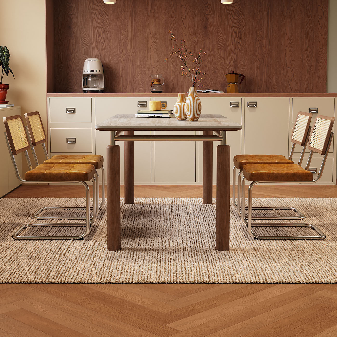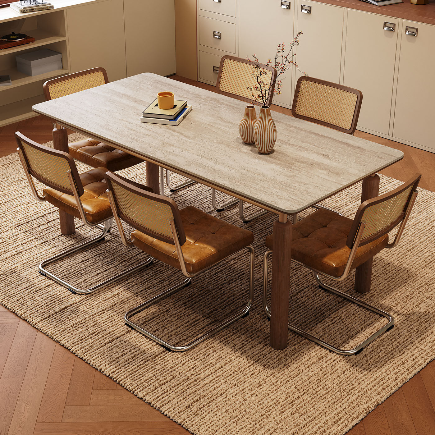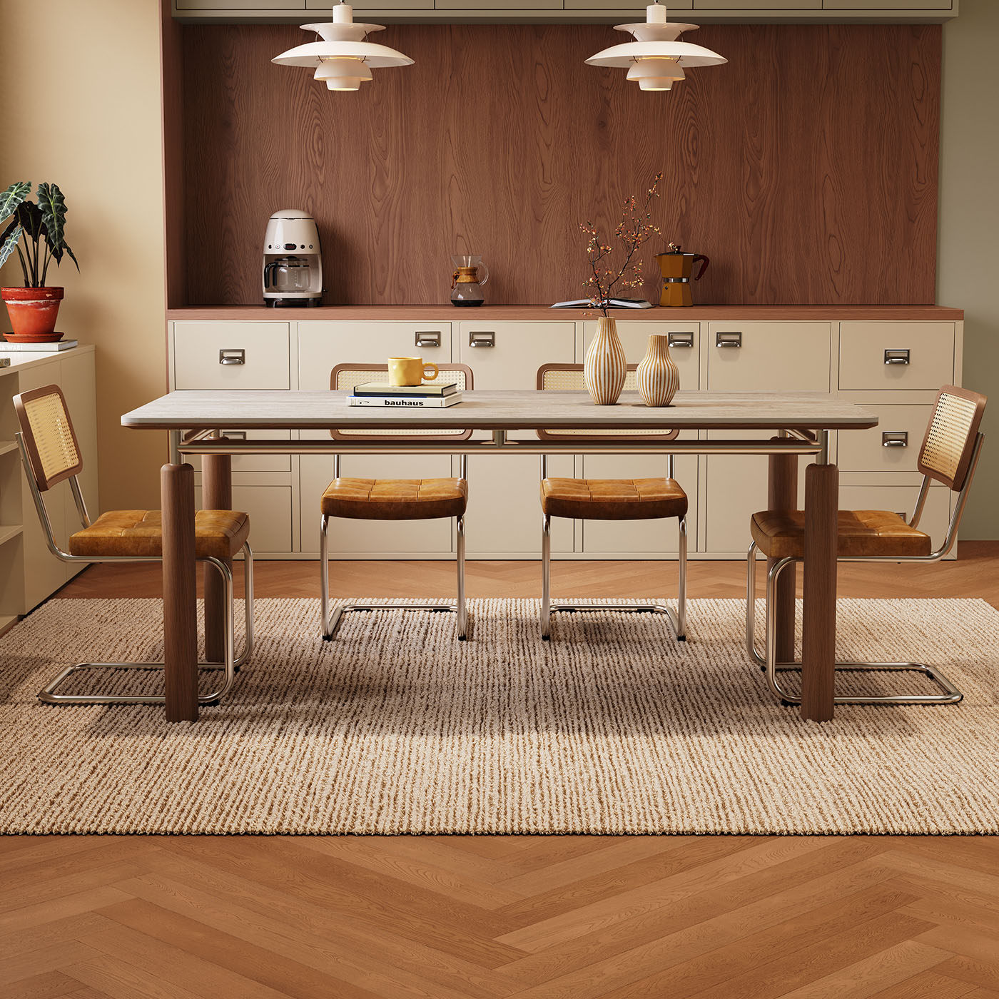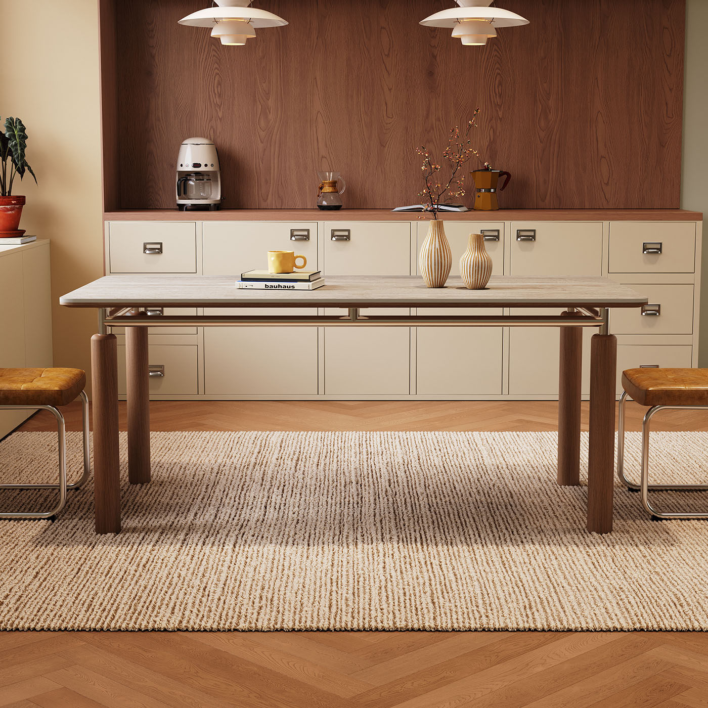 包豪斯实木餐桌长方形家用小户型2025新款高端中古风洞石岩板餐桌