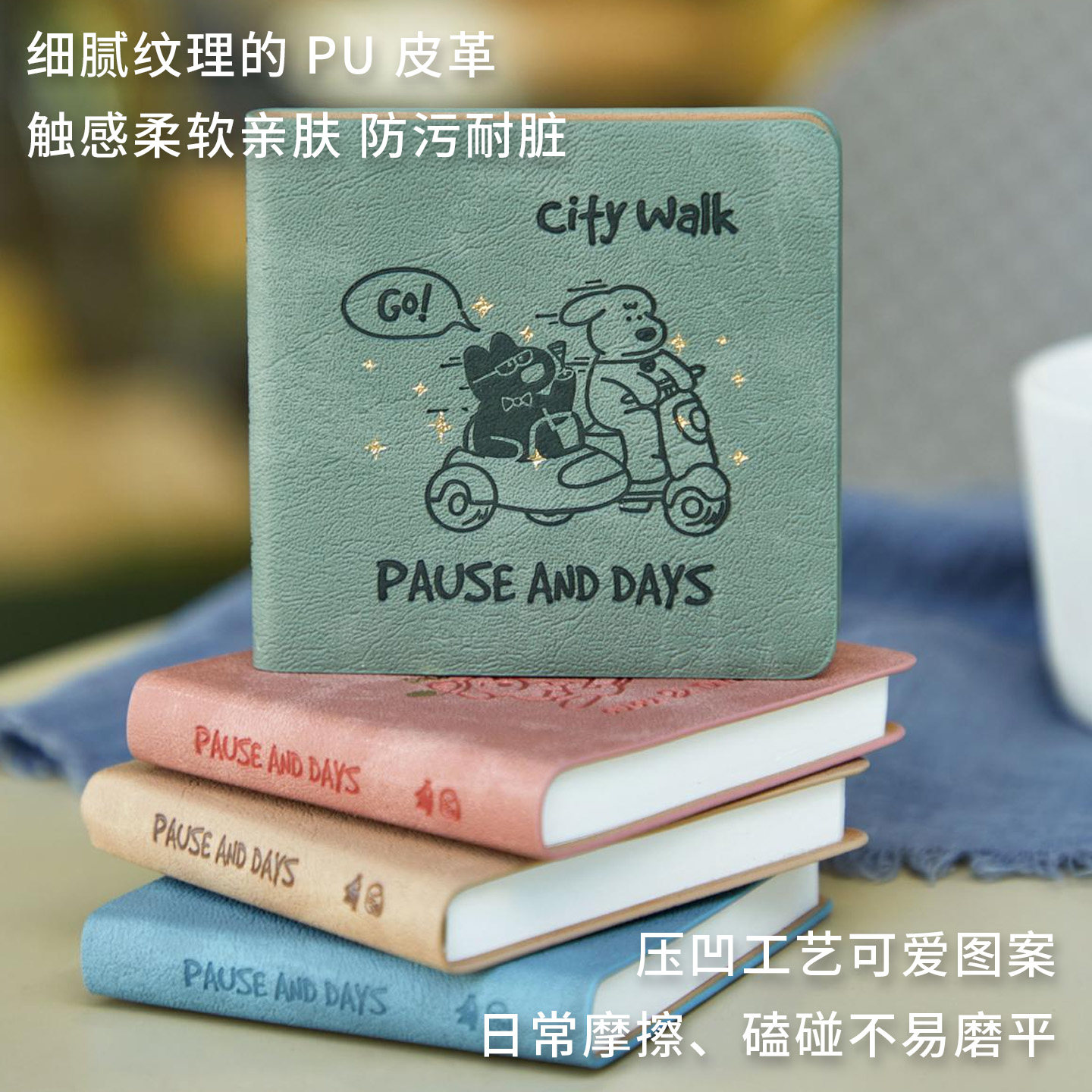 文艺复古方形口袋笔记本烫金工艺文字笔记本高颜值记事本圆角防划不占地防污耐脏学生党随手记神器