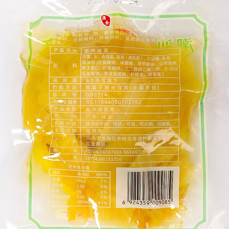 桂盛潮汕咸菜潮州酸菜袋装250克特产配粥泡菜即食脆爽芥菜酸豆角