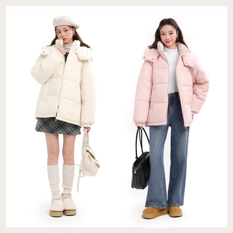 2025宽松显瘦工作棉袄短款秋冬新款轻薄连帽韩版大码羽绒棉衣外套