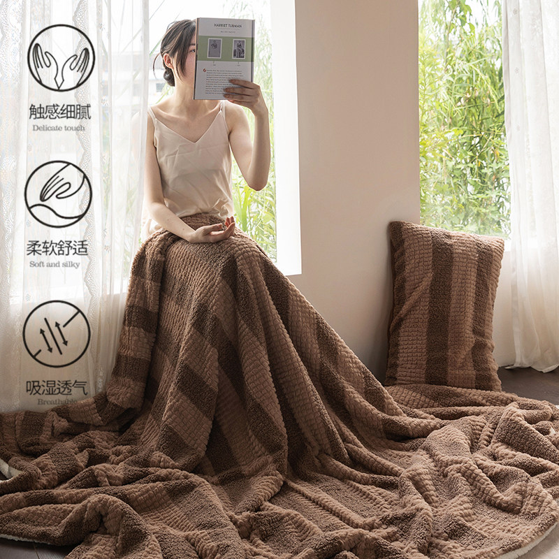 A类牛奶绒毛毯冬季盖毯可机洗单人宿舍毯披肩午睡毯双面绒床单厚