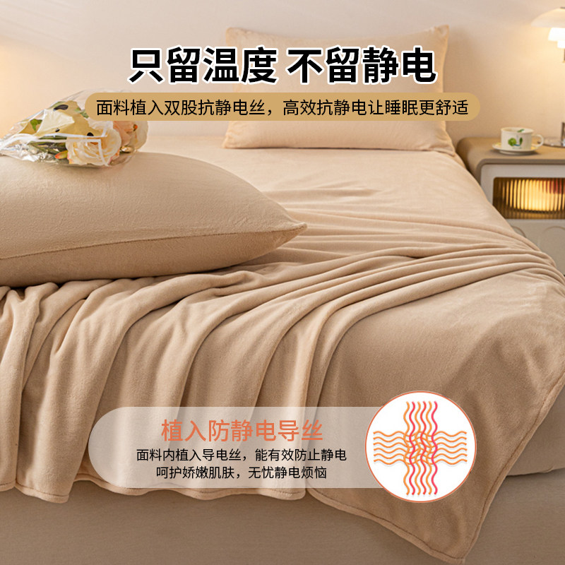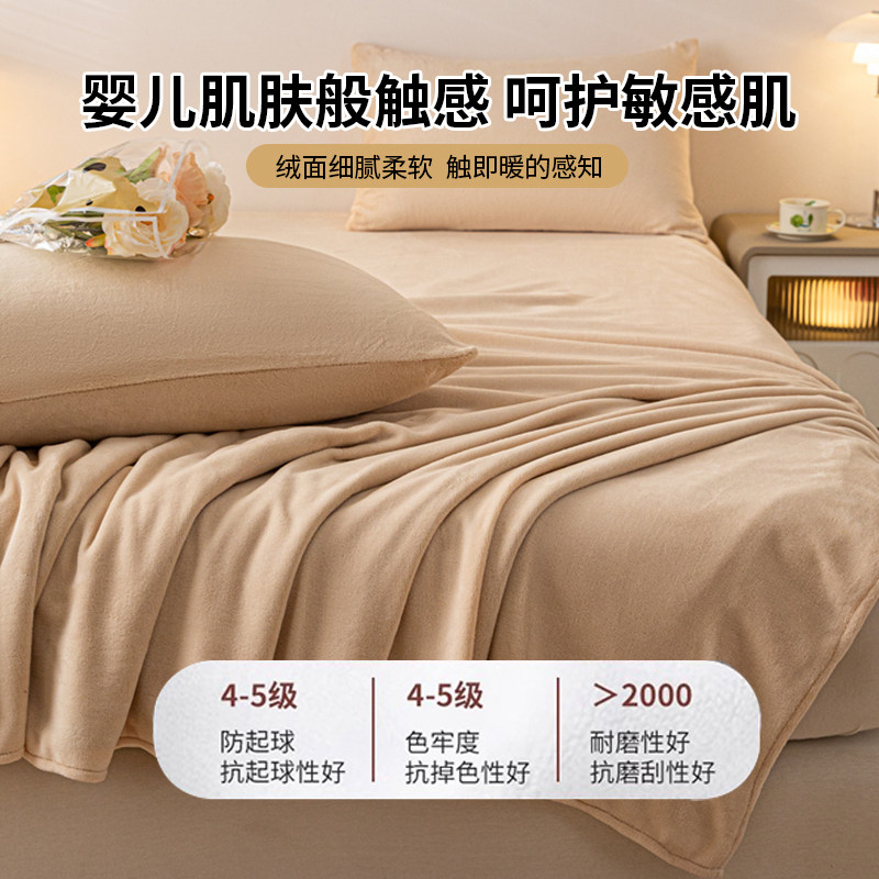 加厚牛奶绒床单单件冬季加绒珊瑚绒法兰绒毛毯学生宿舍被单三件套