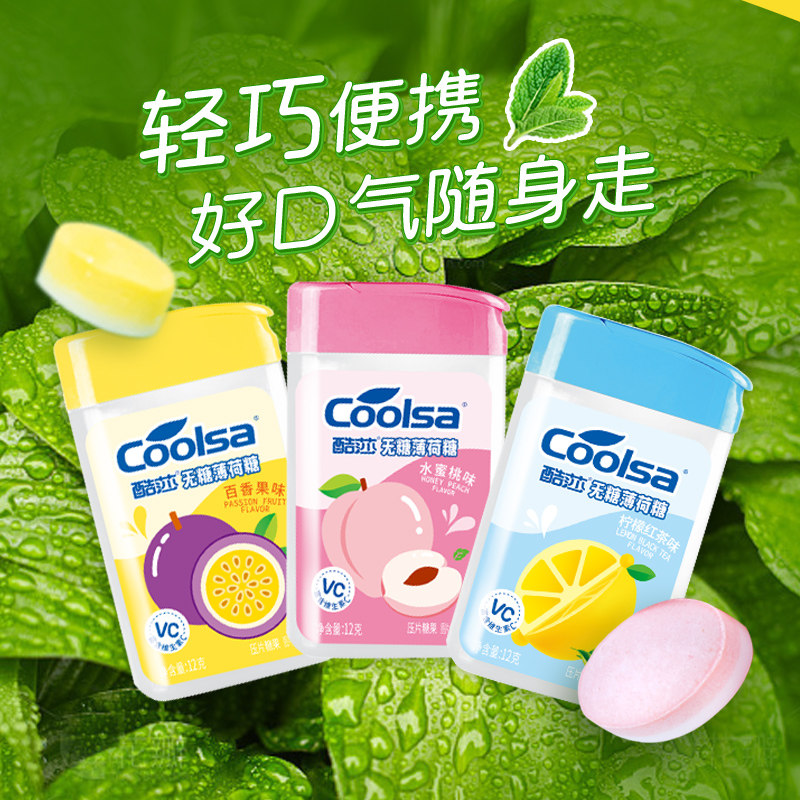 酷莎无糖薄荷糖清新口气果味接吻糖办公室解馋零食便携糖果