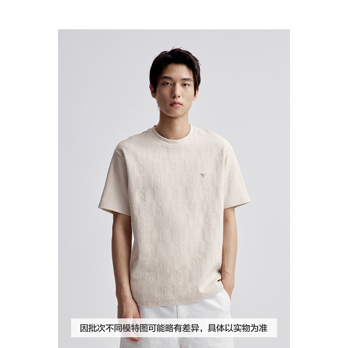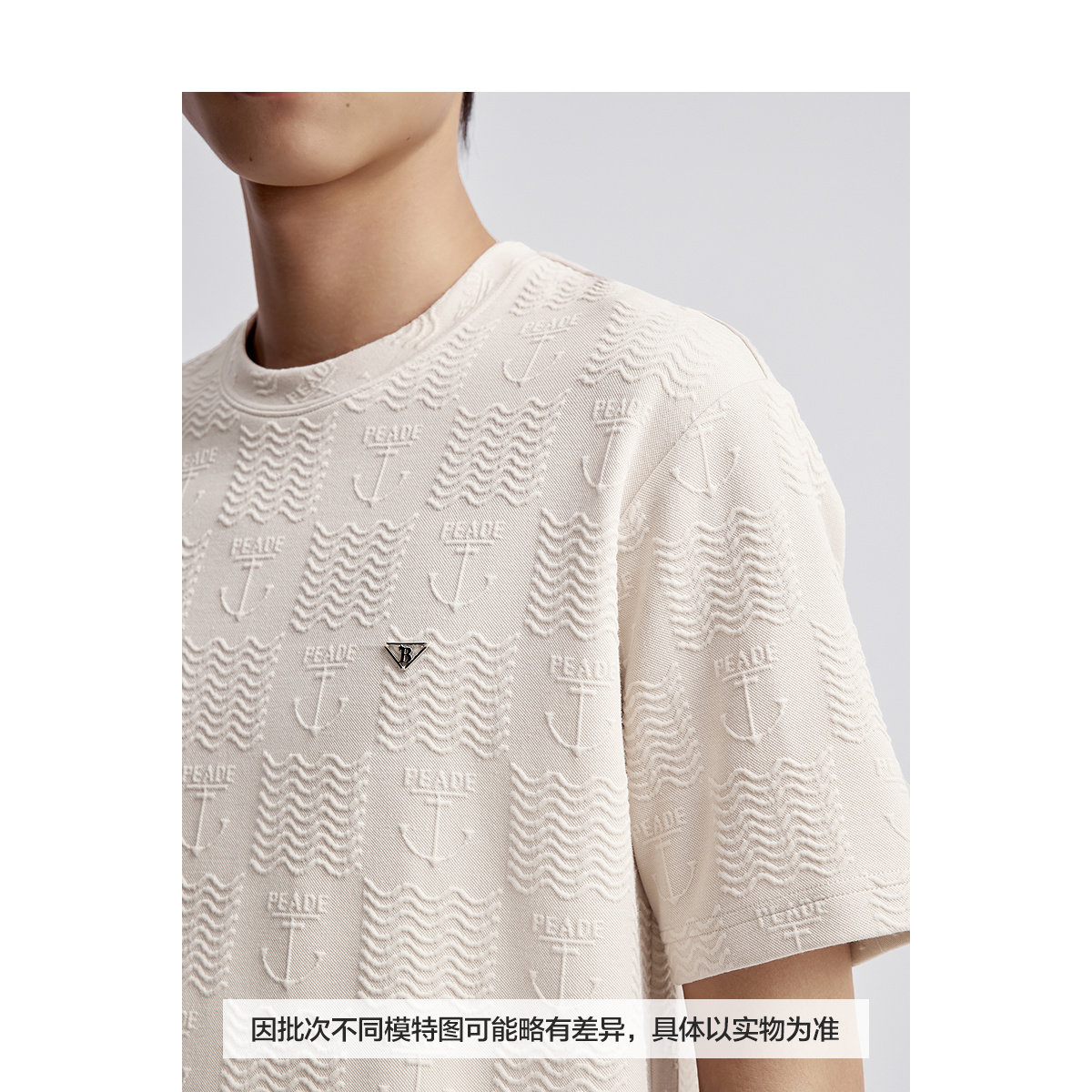 太平鸟男装夏季提花面料短袖T恤宽松质感重磅男士休闲百搭上衣
