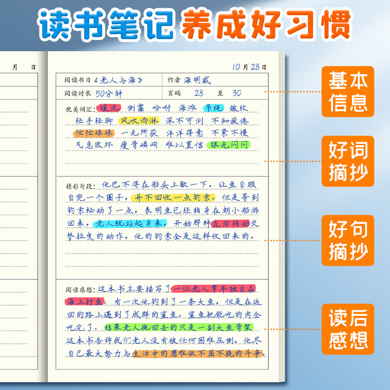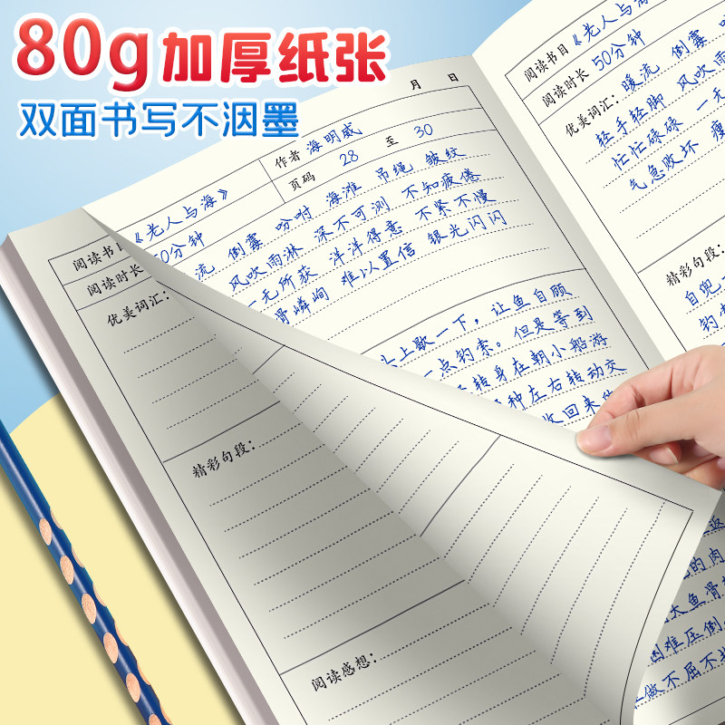 读书笔记本好词好句摘抄本读书记录卡专用本小学生日积月累阅读打卡记录本三年级初中生加厚积累本语文笔记本