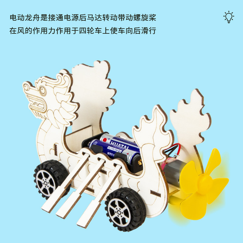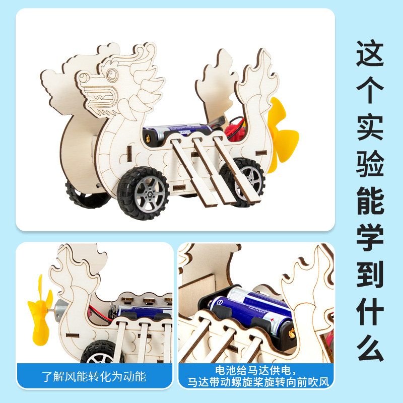 电动龙舟风力车模型手工diy拼装儿童礼物作业材料科学小实验套装