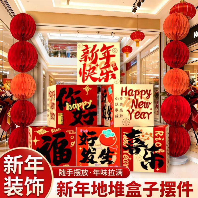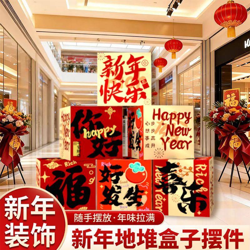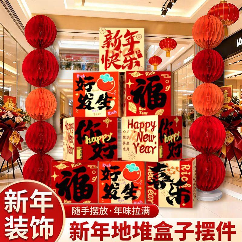 新年装饰盒子摆件2026年春节过年氛围装饰品商场年会场景布置