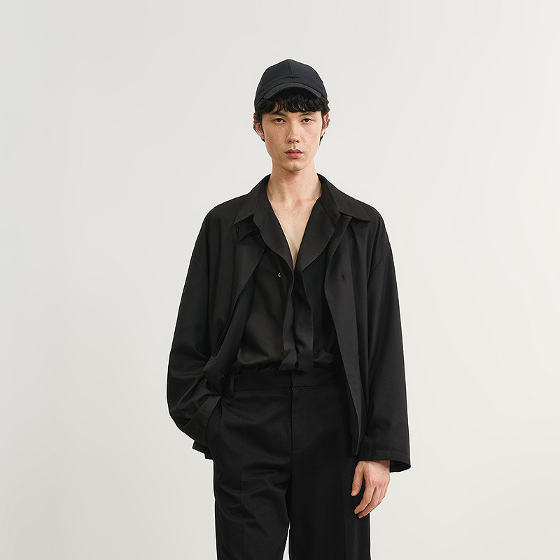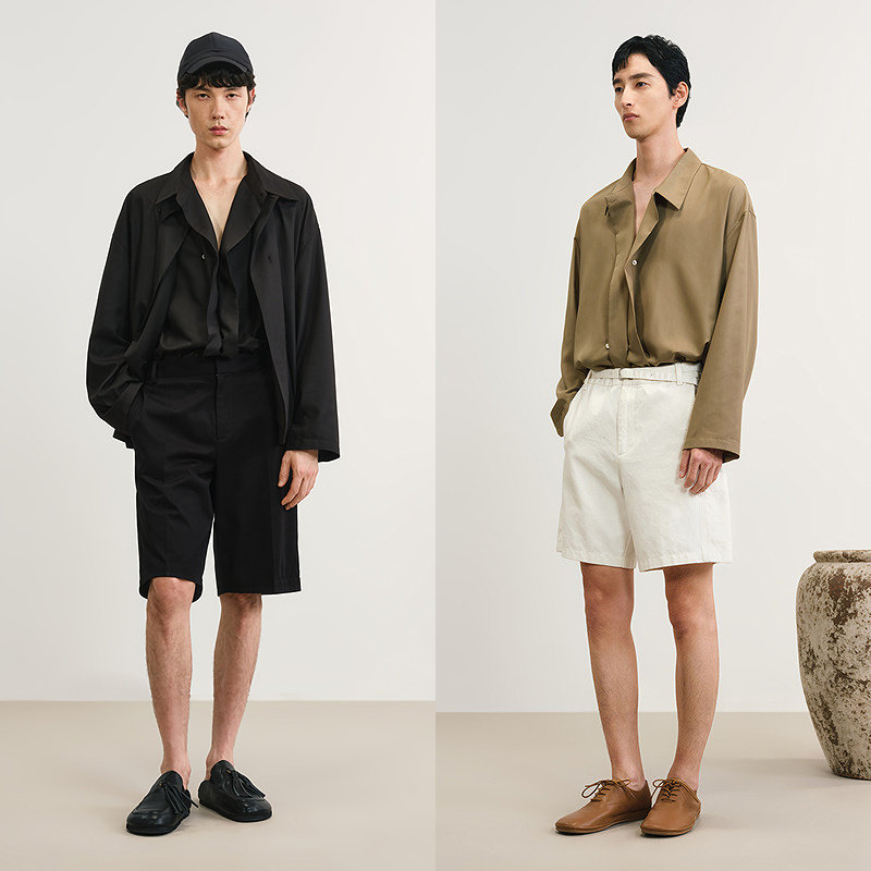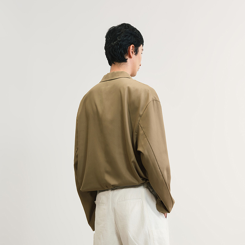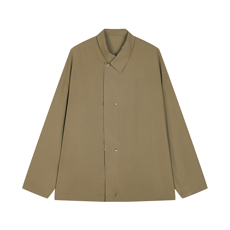 速写男装春秋新款男士衬衫斜门襟设计感长袖衬衫新中式宽松优雅