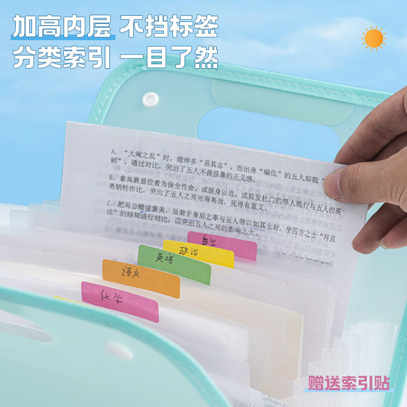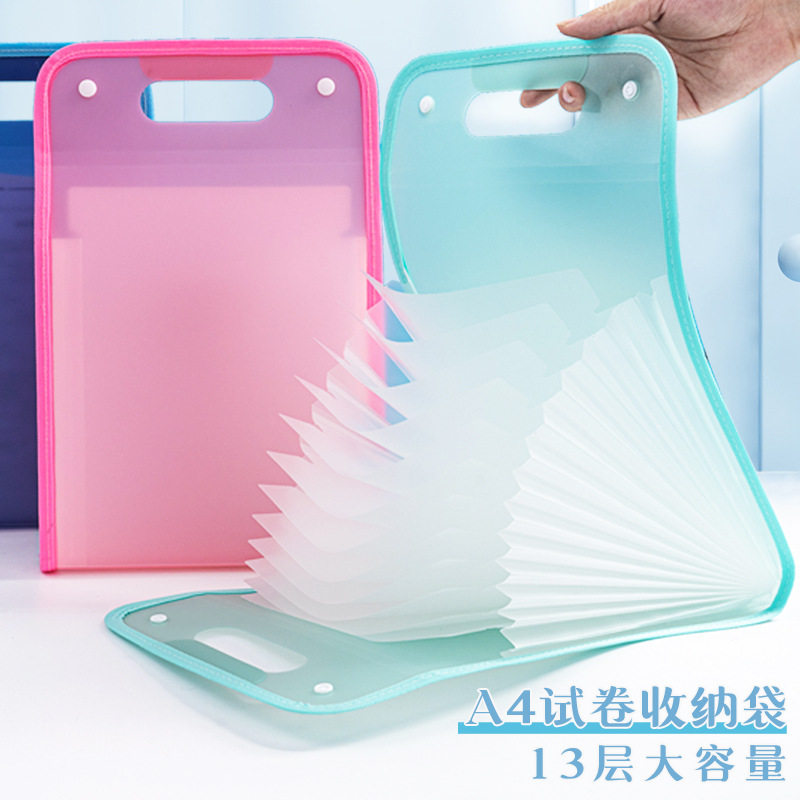 新品 A4竖式包边风琴包文件夹手提学生试卷收纳袋办公13格试卷收