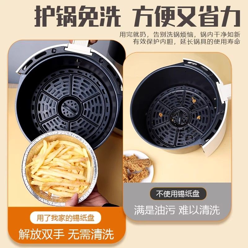 空气炸锅专用加厚锡纸盘盒烧烤箱烘焙锡箔碗家用锡纸盒食品级圆形