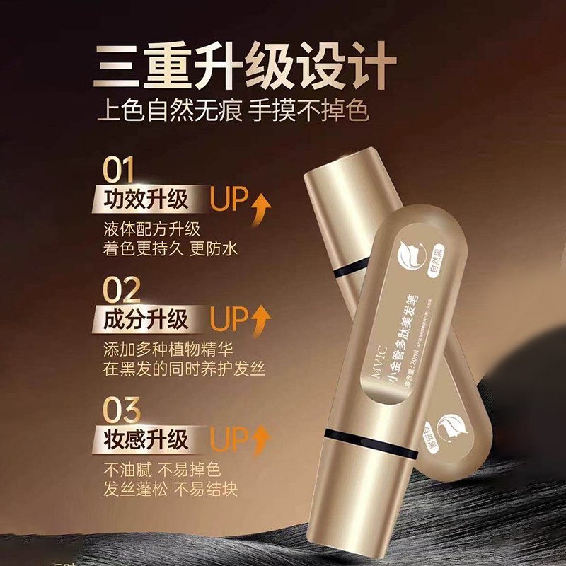 小金管多肽美发笔遮盖白发神器美发棒纯植物一次性不掉色正品染发