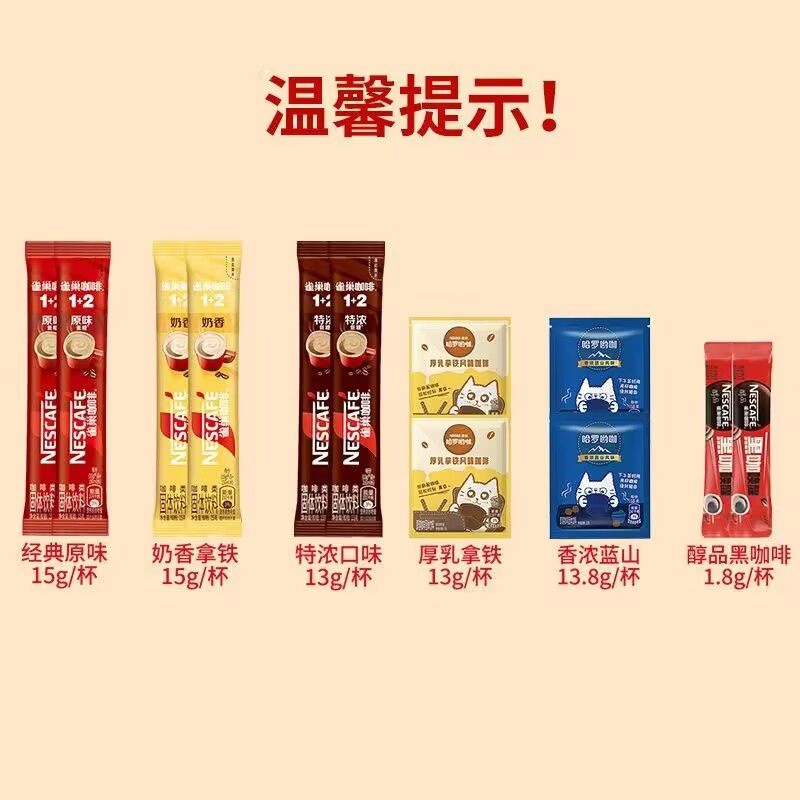 雀巢咖啡1+2原味奶香特浓拿铁蓝山速溶咖啡粉混合办公室正品提神