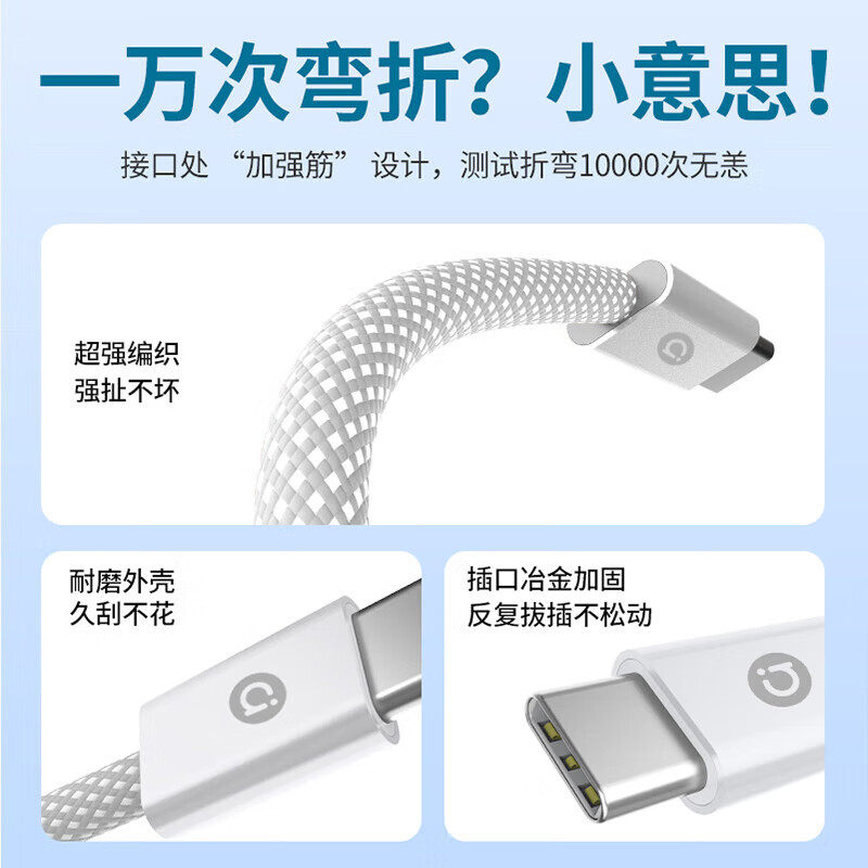 喜美诺快充数据线PD100W适用TypeC苹果15充电线iPhone16苹果13Pro苹果14华为小米PD30W快充