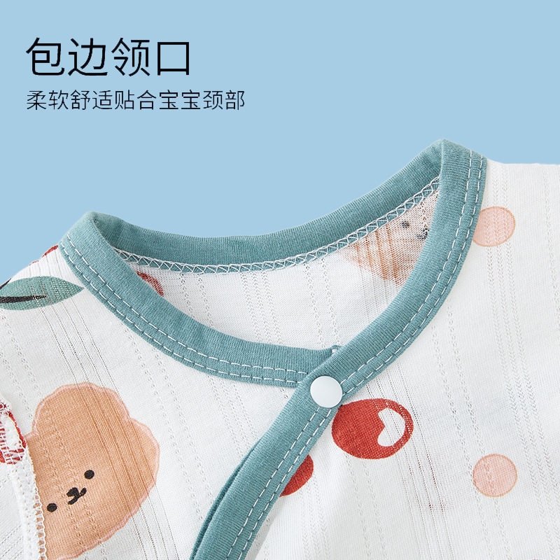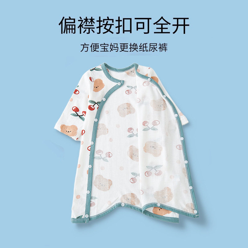 婧麒婴儿睡袍夏季薄款纯棉幼儿童防踢被男女宝宝家居连体睡衣睡裙