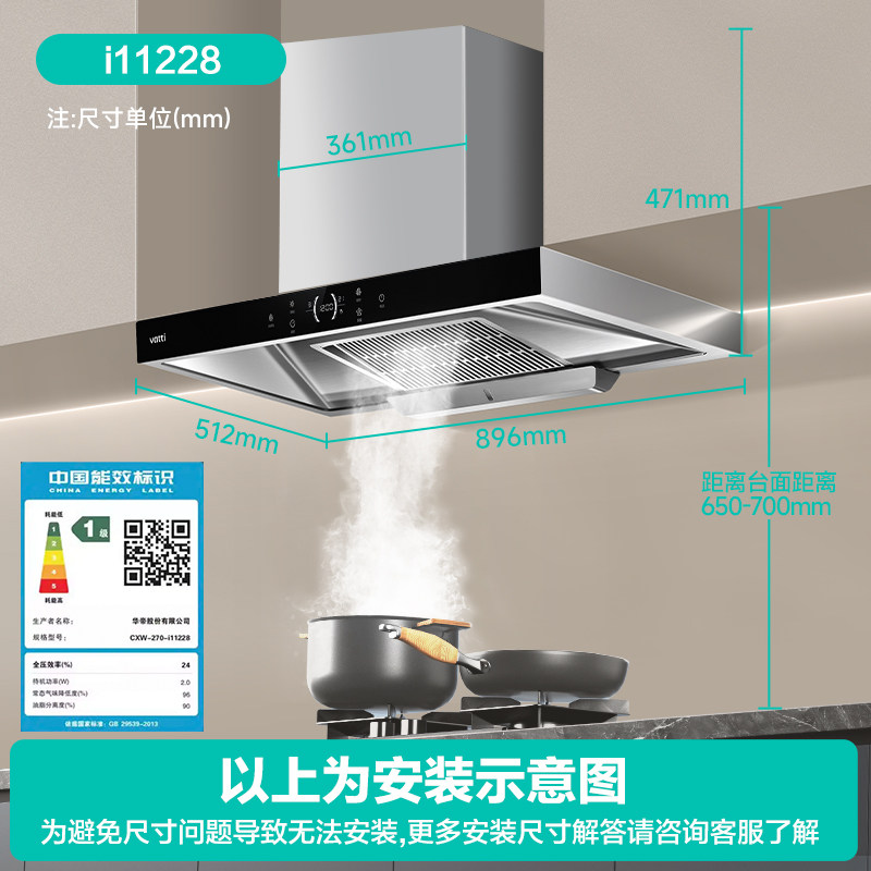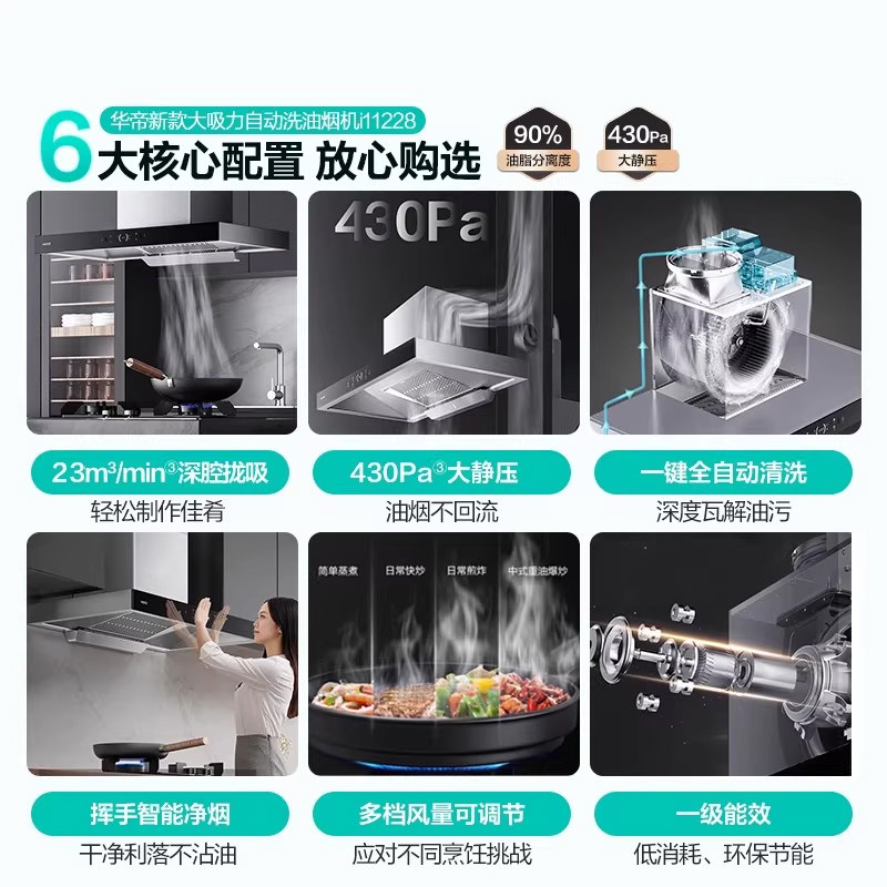 华帝i11228抽油烟机厨房家用自动清洗顶吸油烟机官方旗舰店正品