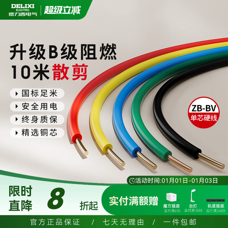 德力西电线阻燃bv单芯硬线家用家装电缆国标2.5 4 6平方铜芯铜线